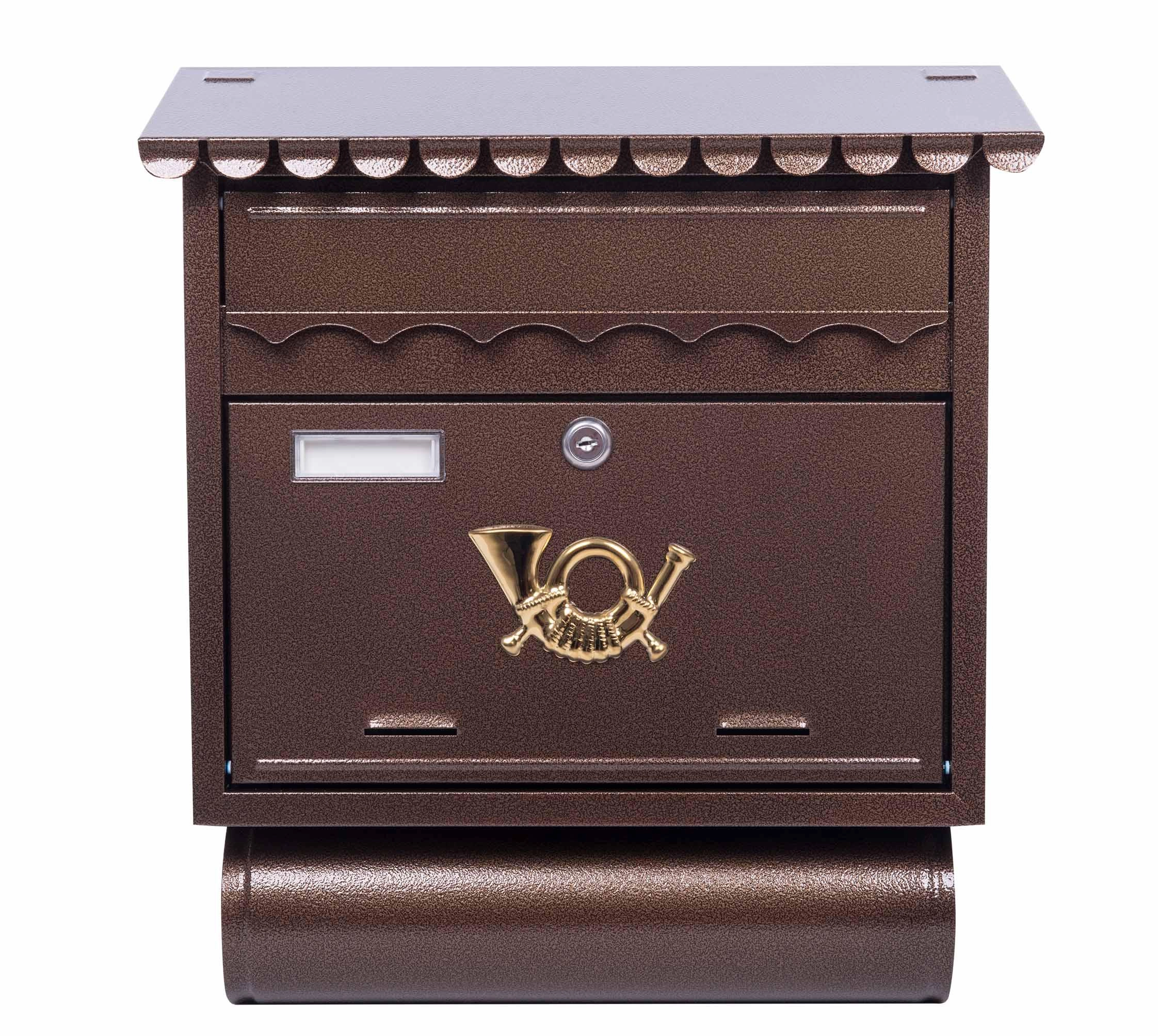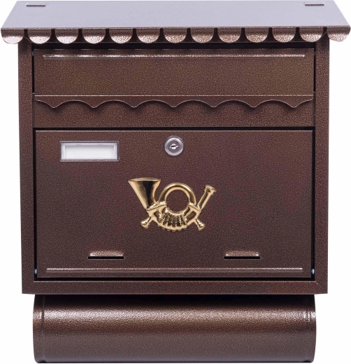 Elegantní poštovní schránka s hranatou stříškou a integrovaným tubusem na noviny nabízí bezpečné uložení pošty, odolné provedení a moderní design. Vyrobena z ocelového plechu s hnědou kladívkovou (antickou) úpravou pro vyšší odolnost vůči povětrnostním vlivům, s uzamykáním na klíč a krytým vhozovým otvorem proti vlhkosti.