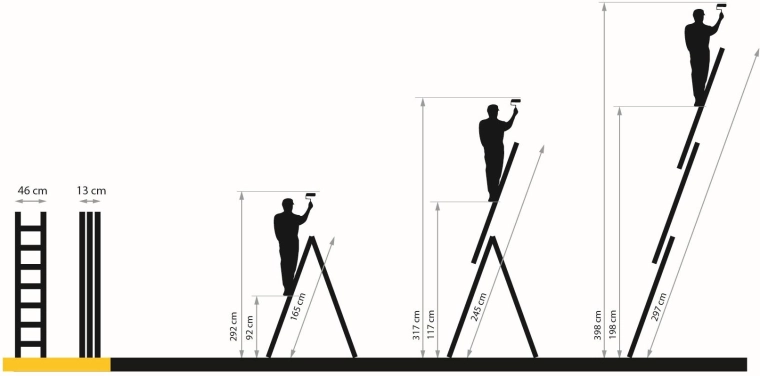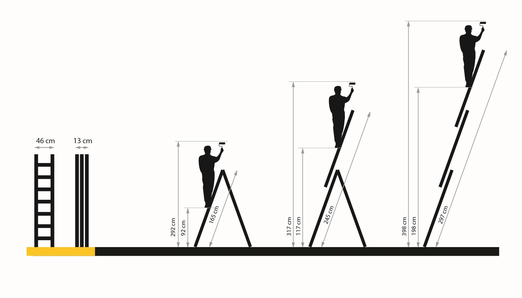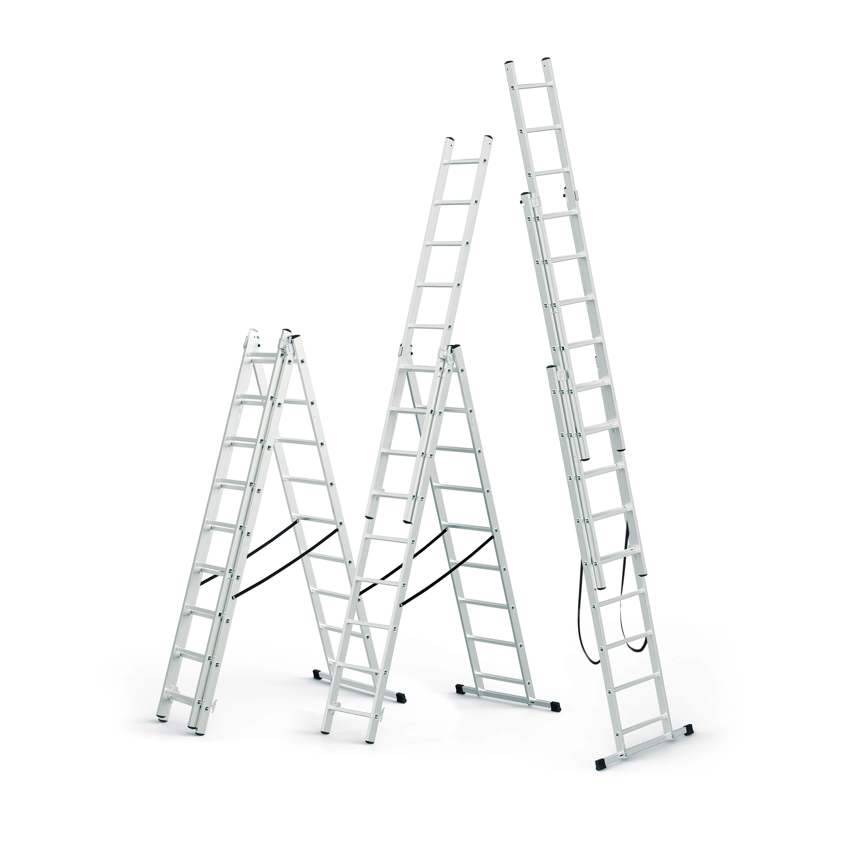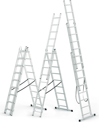Použijte jej jako opěrný, volně stojící A‑žebřík nebo částečně vysunutý. Snadné přestavení díky spolehlivým zámkům.
