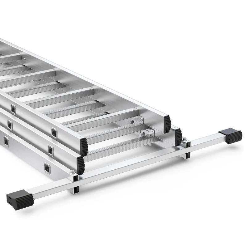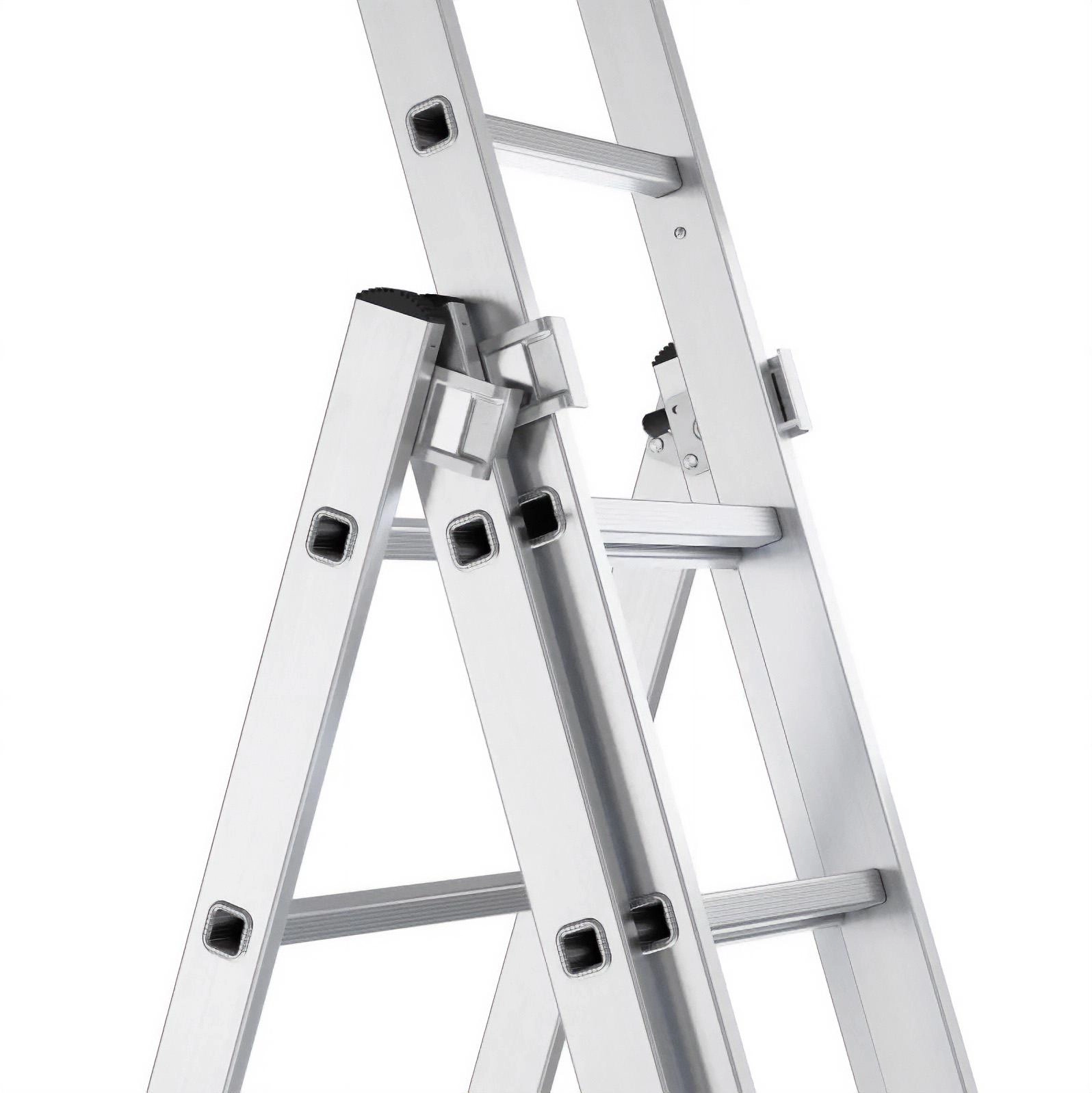 Praktický trojdílný žebřík 3×6 příček je ideální volbou pro domácí i hobby použití. Díky lehké hliníkové konstrukci se snadno přenáší, přitom poskytuje stabilitu až do pracovní výšky 3,98 m. Vylepšený stabilizátor a protiskluzové patky zajišťují bezpečné postavení na různých površích.