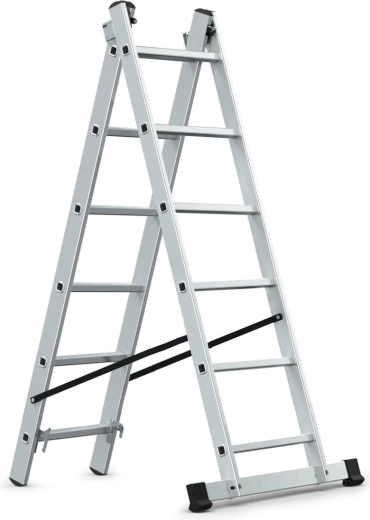 Lehký a odolný hliníkový žebřík s konfigurací 2×6 příček pro univerzální použití v domácnosti i dílně. Nabízí protiskluzové patky, vylepšený stabilizátor a automatické zámky pro bezpečné nastavení výšky. Vroubkované příčky zajišťují jistý krok a pohodlnou práci až do pracovní výšky 3,7 m.