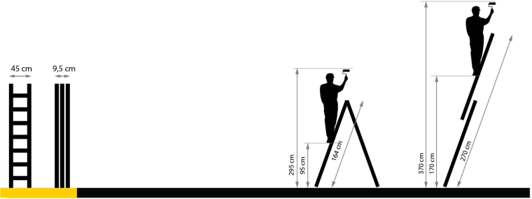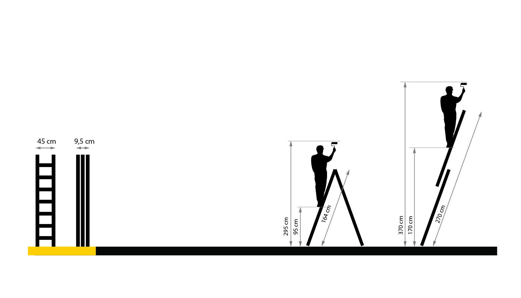 Využijete jej jako přímý žebřík nebo v A‑rámu. Vroubkované příčky minimalizují riziko uklouznutí a široká základna (0,70 m) zvyšuje jistotu při práci. Splňuje normu EN 131 a unese až 150 kg.