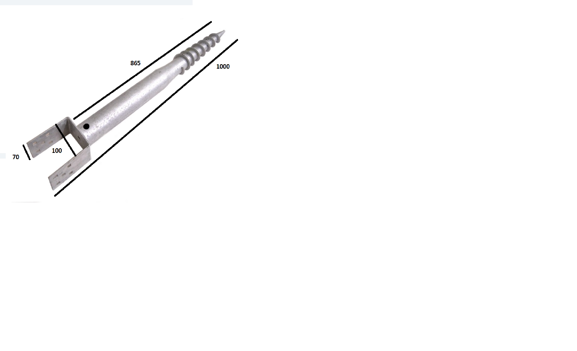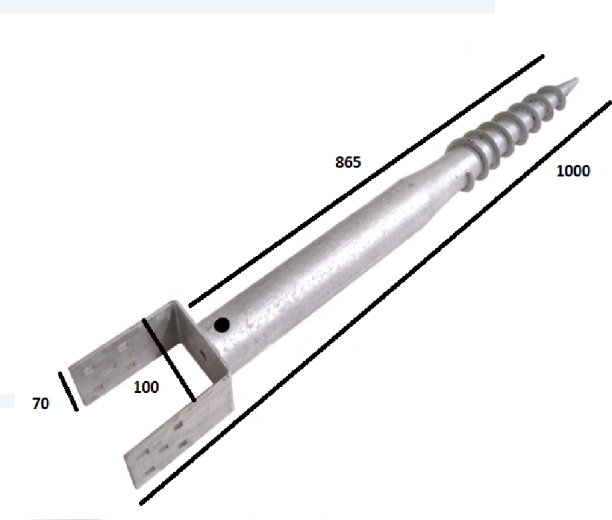 Zemní vrut s U patkou 70×100 mm, délka 1000 mm, pozinkovaná ocel