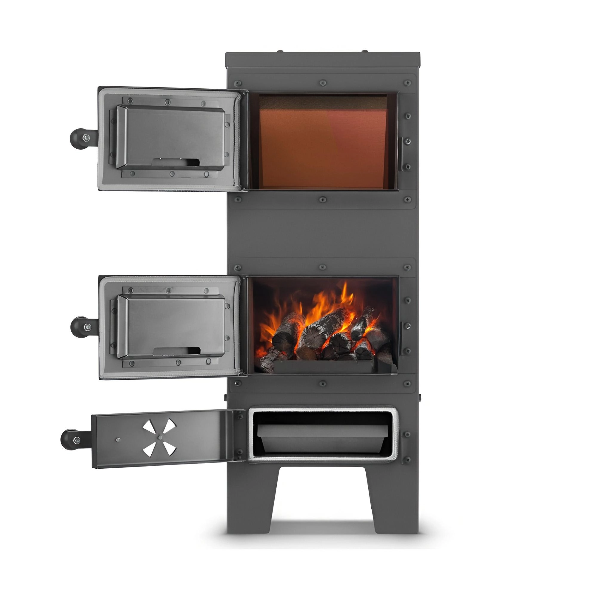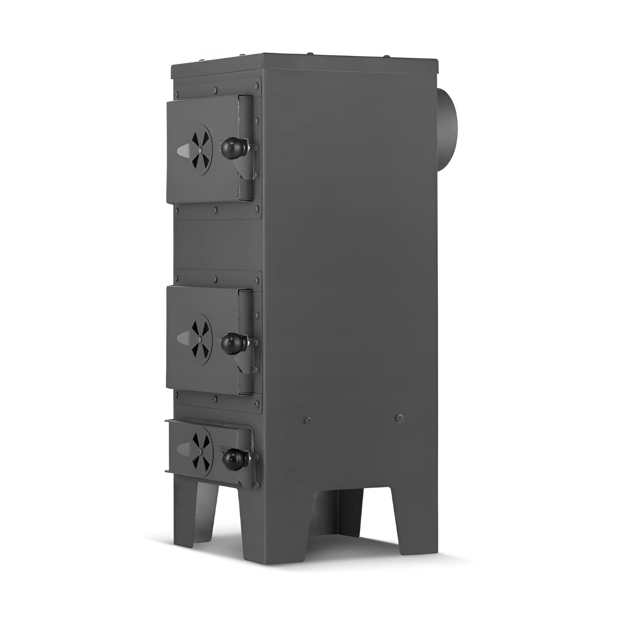 Robustní krbová kamna JAN z evropské výroby jsou vyrobena z 2mm oceli a vyložena šamotem na dně i bočních stěnách pro delší akumulaci tepla a vyšší účinnost spalování. Díky kompaktním rozměrům 69 × 39 × 28 cm se skvěle hodí do menších místností, dílen nebo rekreačních objektů. Připojení kouřovodu o průměru 120 mm a žáruvzdorný antracitový nátěr zajišťují snadnou instalaci i dlouhou životnost.