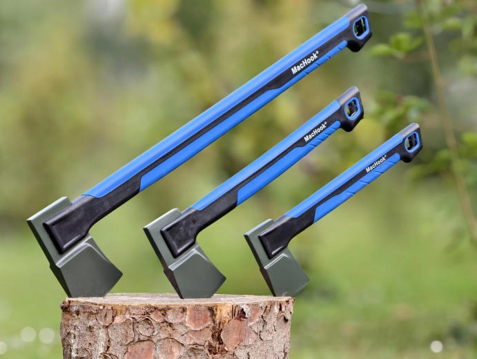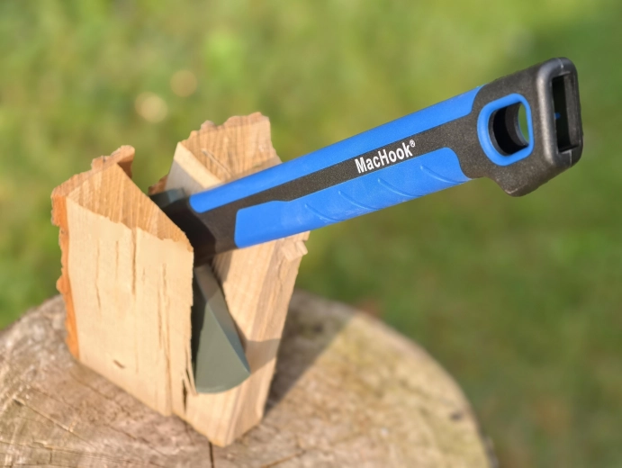Tato kompaktní sekera kombinuje 940 g vyváženou hlavu s ergonomickou nylonovo–sklolaminátovou násadou, která účinně tlumí nárazy a redukuje únavu rukou. Díky délce 45 cm nabízí skvělý poměr mezi ovladatelností a razancí úderu – ideální pro přípravu třísek, štípání menších polen i tesařské práce.