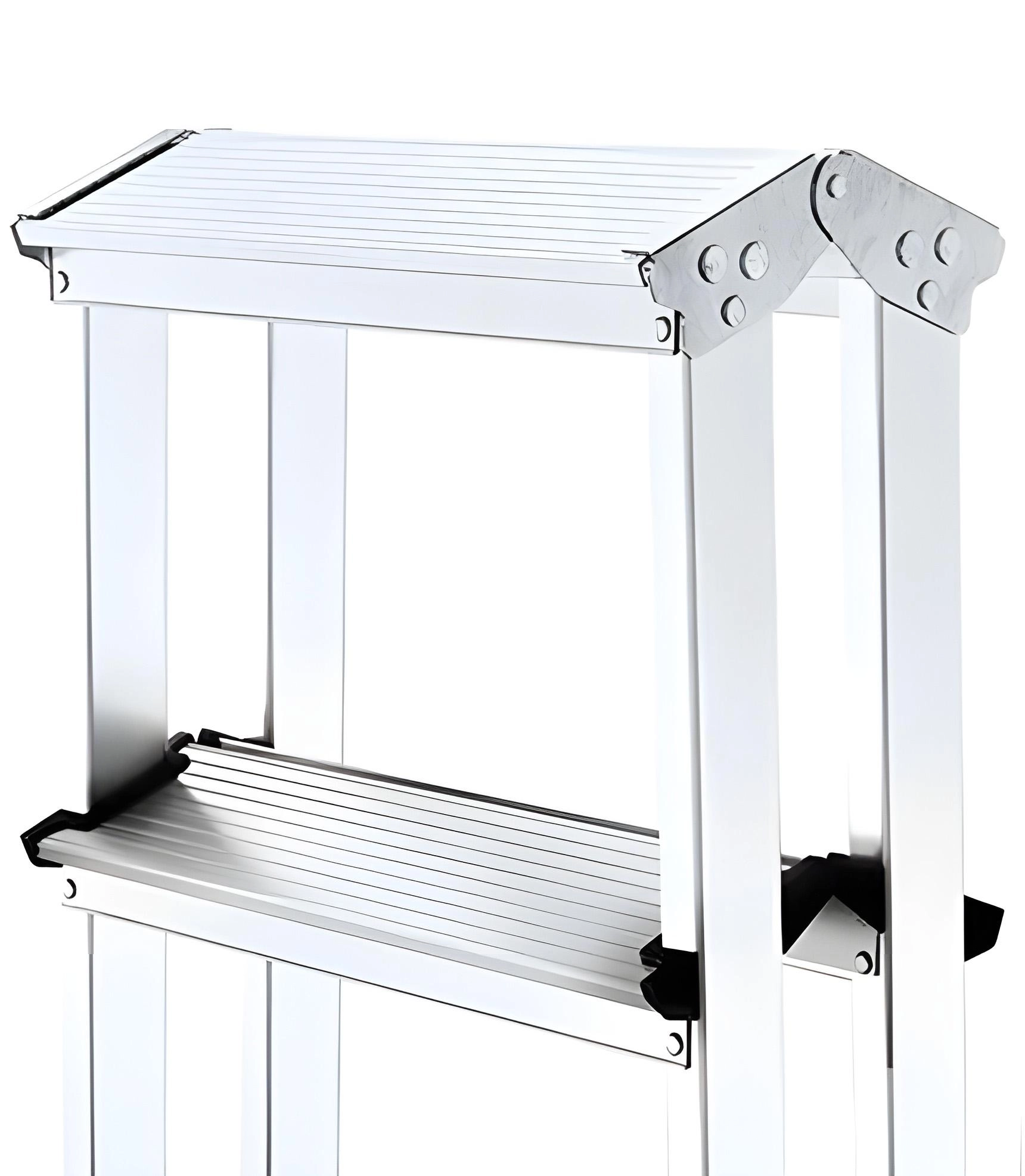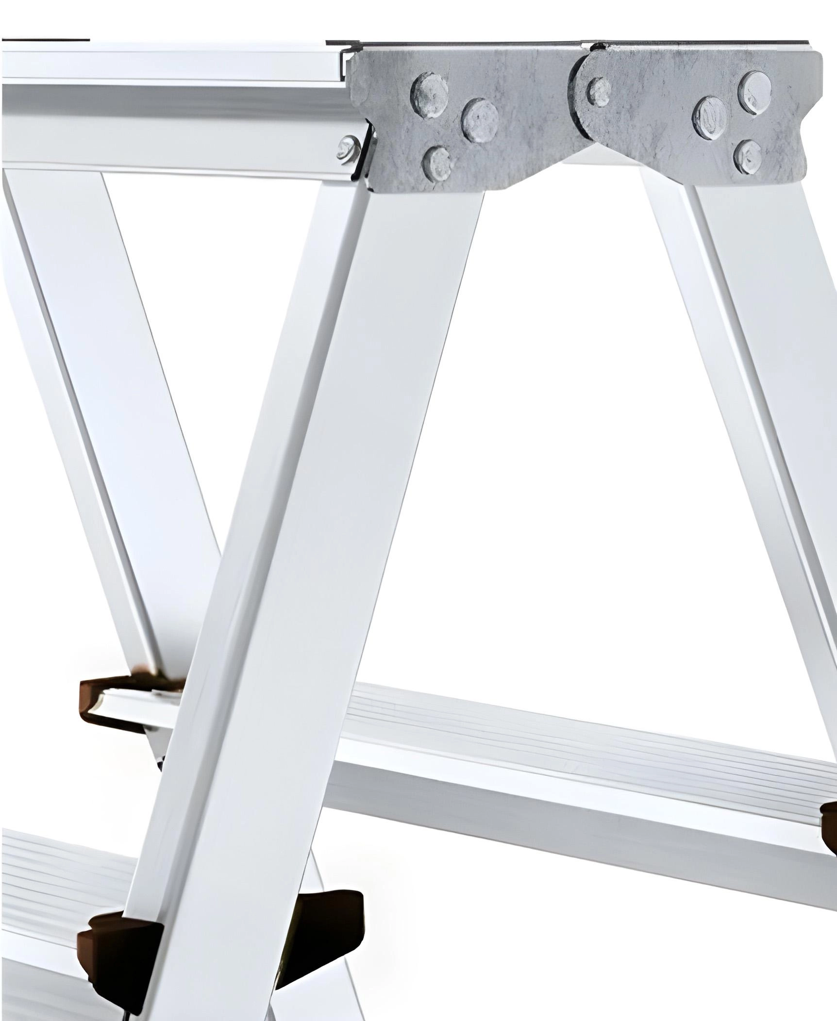 Tyto oboustranné schůdky HOME 2x4 jsou ideální pomocník do bytu, dílny i garáže. Díky lehkému hliníkovému rámu se snadno přenášejí a díky rychlému složení a rozložení je máte vždy po ruce. Vroubkované stupně a pracovní plošina zajišťují jistý krok, zatímco protiskluzové koncovky nohou zvyšují stabilitu na různých površích.