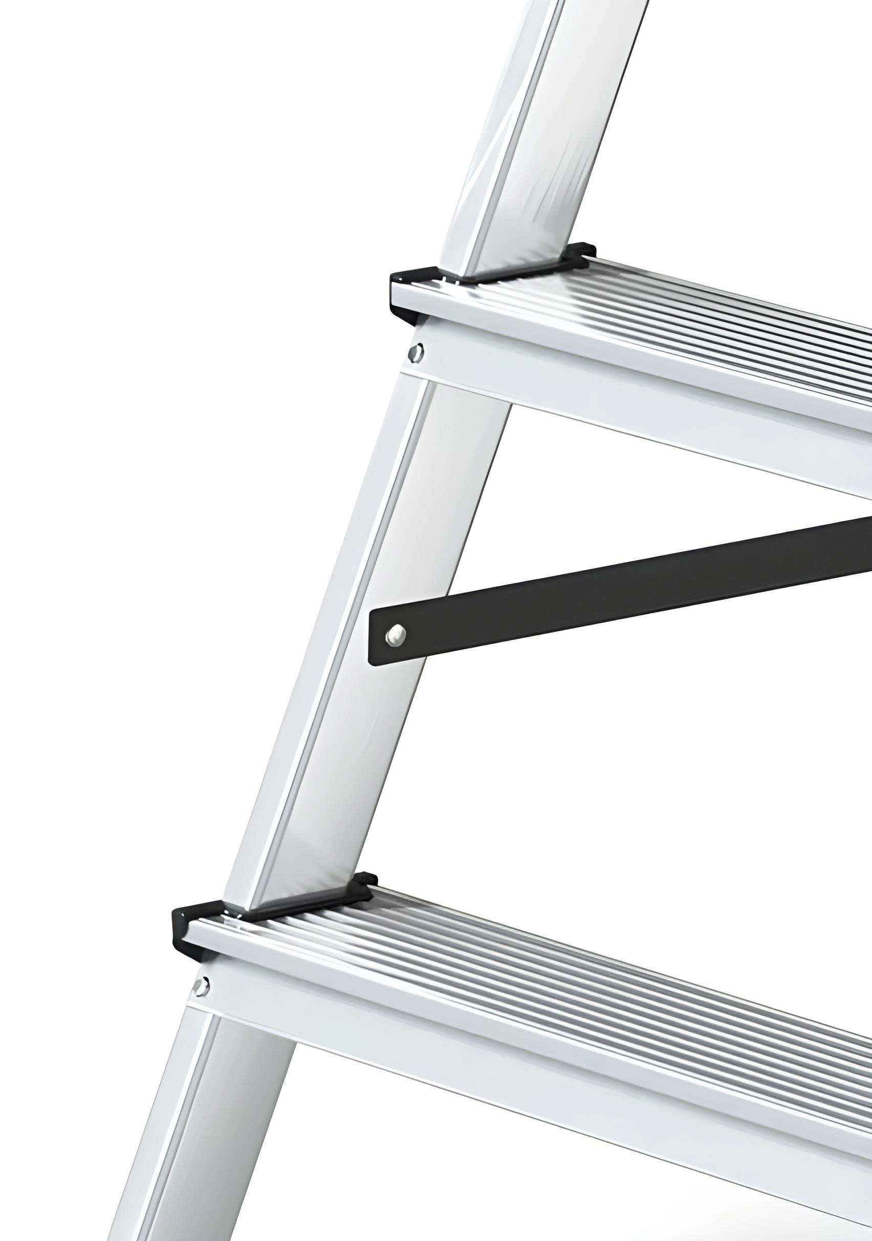 Oboustranné hliníkové schůdky 2×6 jsou ideální volbou pro domácí práce, kde oceníte kombinaci nízké hmotnosti, stability a rychlého složení. Vroubkovaná pracovní plošina i stupně zajišťují jistý krok, zatímco plastové protiskluzové koncovky chrání podlahu a zvyšují stabilitu.
