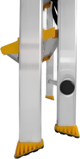 Vroubkovaná, protiskluzová plošina poskytuje pevný postoj i při delší práci ve výšce. Hliníkový rám s výztuhami zvyšuje celkovou stabilitu.