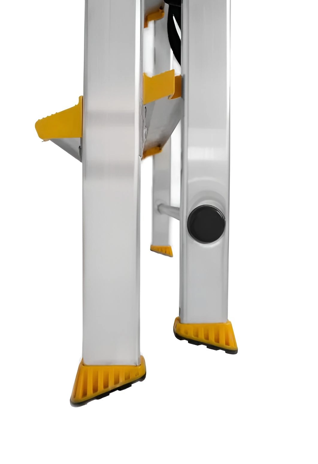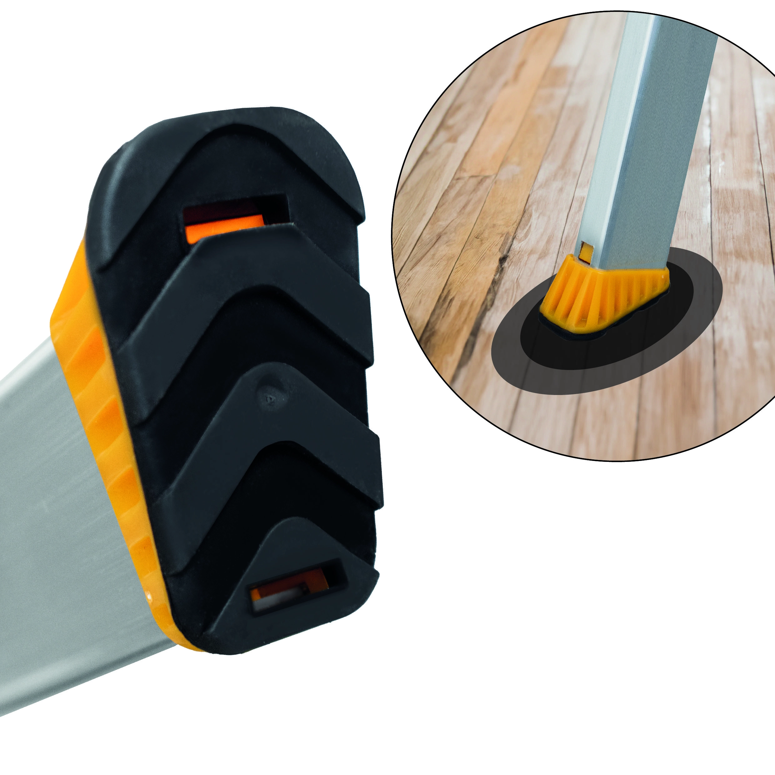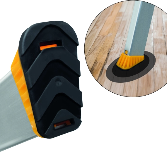 Gumové koncovky a široké vroubkované stupně minimalizují riziko uklouznutí a chrání podlahu. Ideální pro interiér i exteriér.
