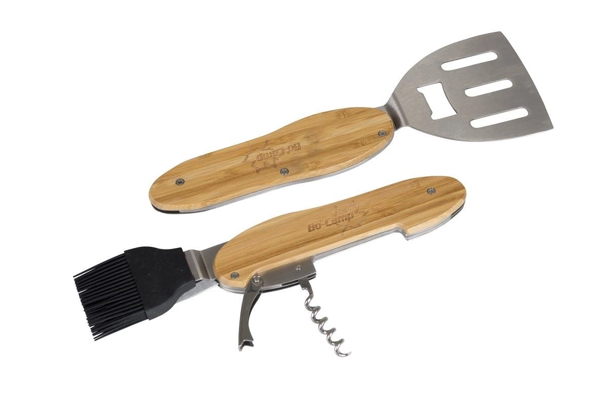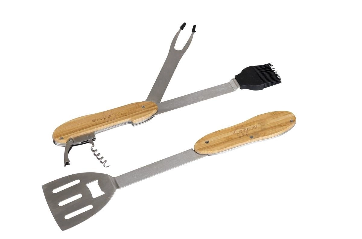 Obracečka, vidlička, silikonový mašlovač, vývrtka a otvírák jsou chytře integrovány do jednoho kompaktního setu. Perfektní pro rychlé a organizované grilování.