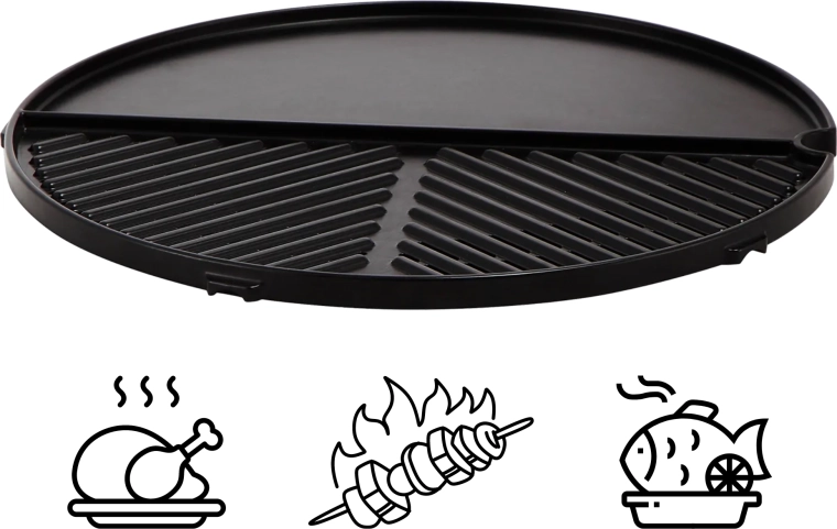 Díky průměru 36 cm získáte dostatek prostoru pro přípravu více jídel najednou. Lehký hliníkový materiál se rychle zahřívá a rovnoměrně rozvádí teplo po celé ploše, takže dosáhnete konzistentních výsledků při každém grilování.