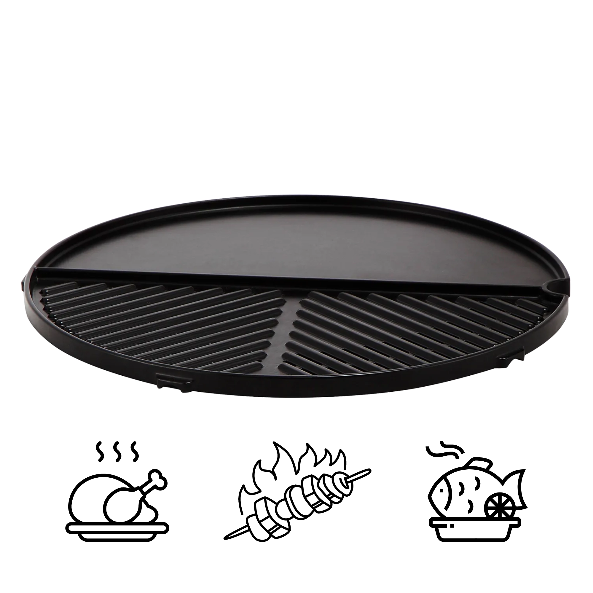 polovina hladká (plancha), polovina žebrovaná (gril)