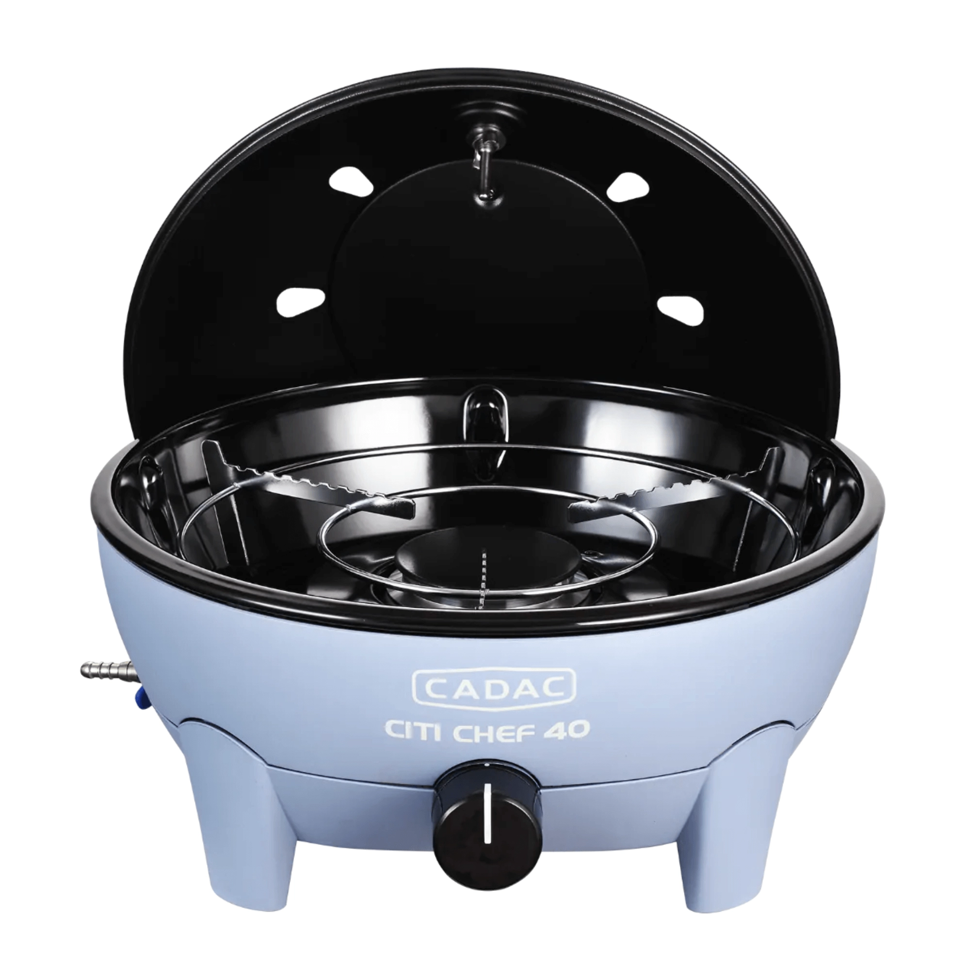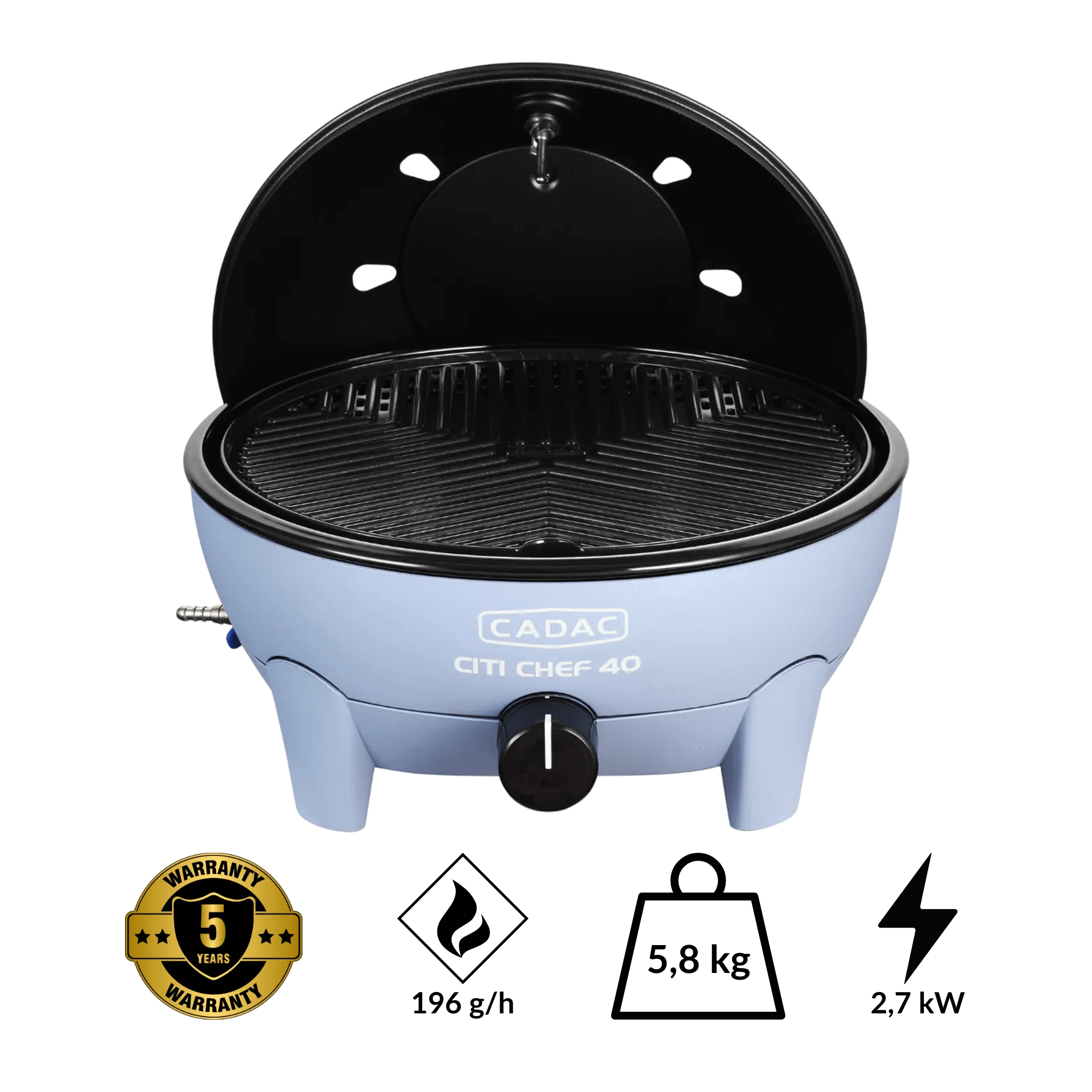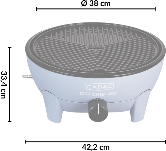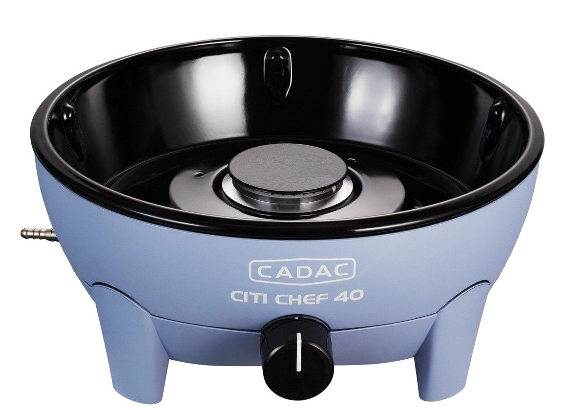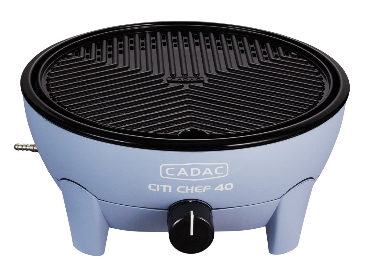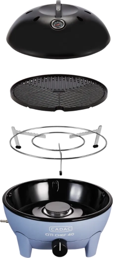 Stolní plynový gril CADAC Citi Chef 40 vyniká stabilní konstrukcí, plynulou regulací výkonu a praktickým víkem s háčky, které snižuje rozstřikování tuku a zároveň funguje jako ochrana proti větru. Díky kompaktním rozměrům a dodávané transportní tašce jej snadno vezmete kamkoli.