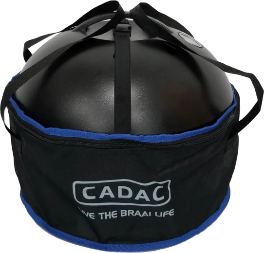 Součástí je stojan na hrnec a kompatibilita s výměnnými povrchy CADAC (paella pánev, pizza kámen). Dodávaná taška zajišťuje bezpečné uložení a pohodlné přenášení.