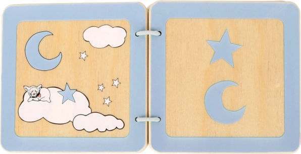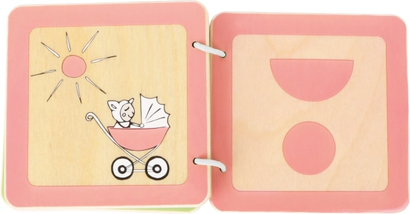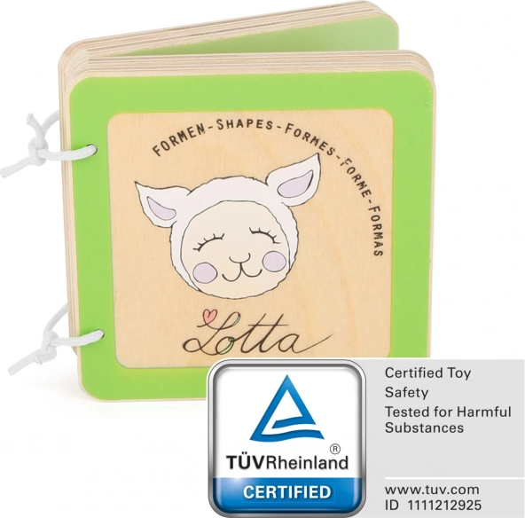 Dřevěná knížka LOTTA je navržená speciálně pro batolata od 12 měsíců. Pomáhá dětem hravou formou poznávat základní tvary a rozvíjet zrakové i hmatové vnímání. Odolné dřevěné stránky s pevnou kroužkovou vazbou zvládnou každodenní používání a snadno se udržují v čistotě.