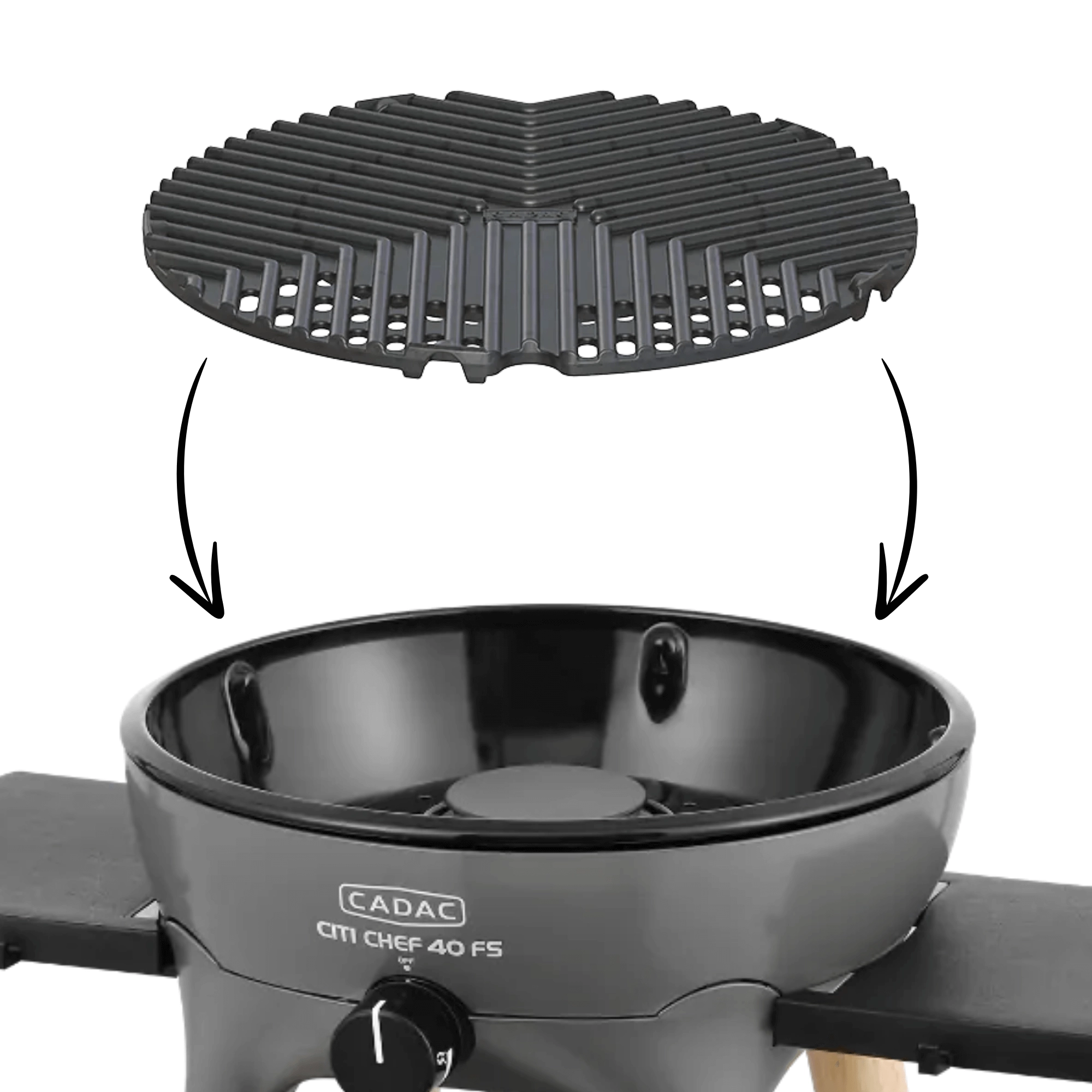 Rošt je navržen pro přesnou kompatibilitu s modely Citi Chef 40 a Carri Chef 40. Lehký, ale odolný materiál umožňuje snadnou manipulaci, a přiložená taška chrání rošt při skladování i cestování.