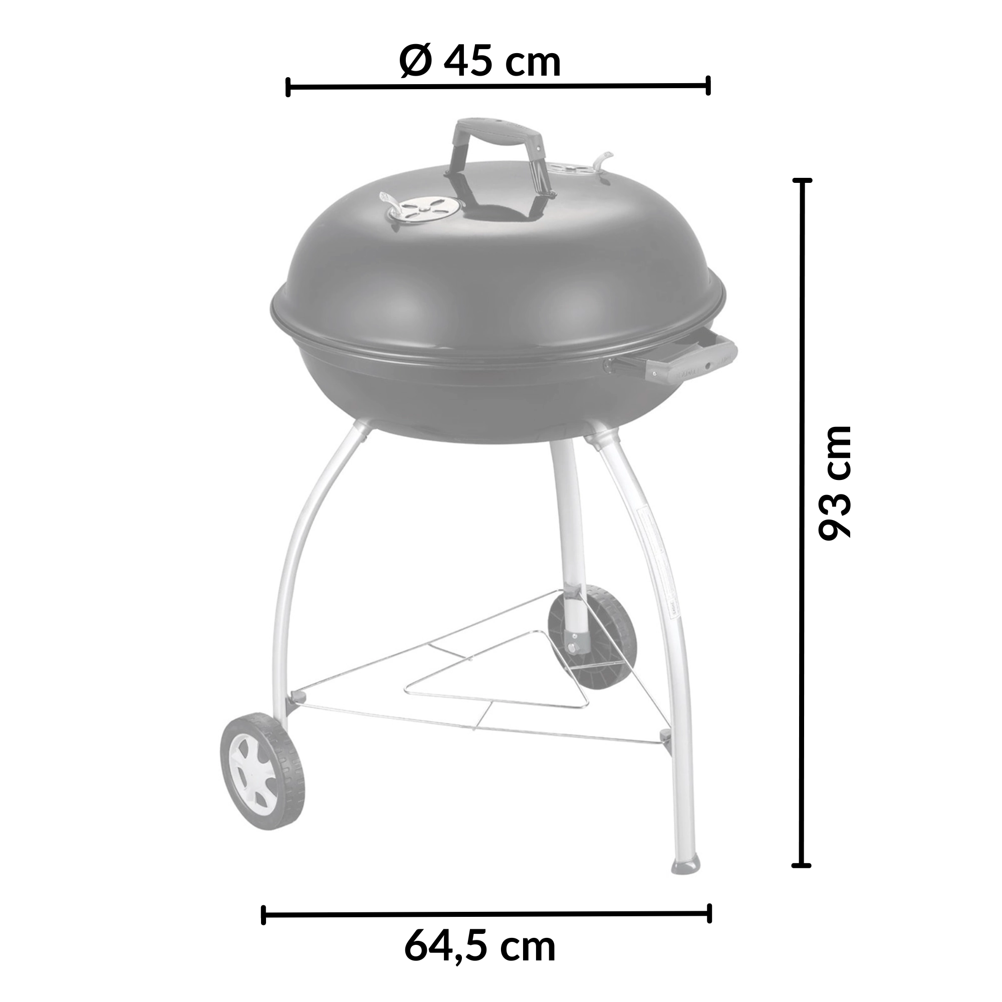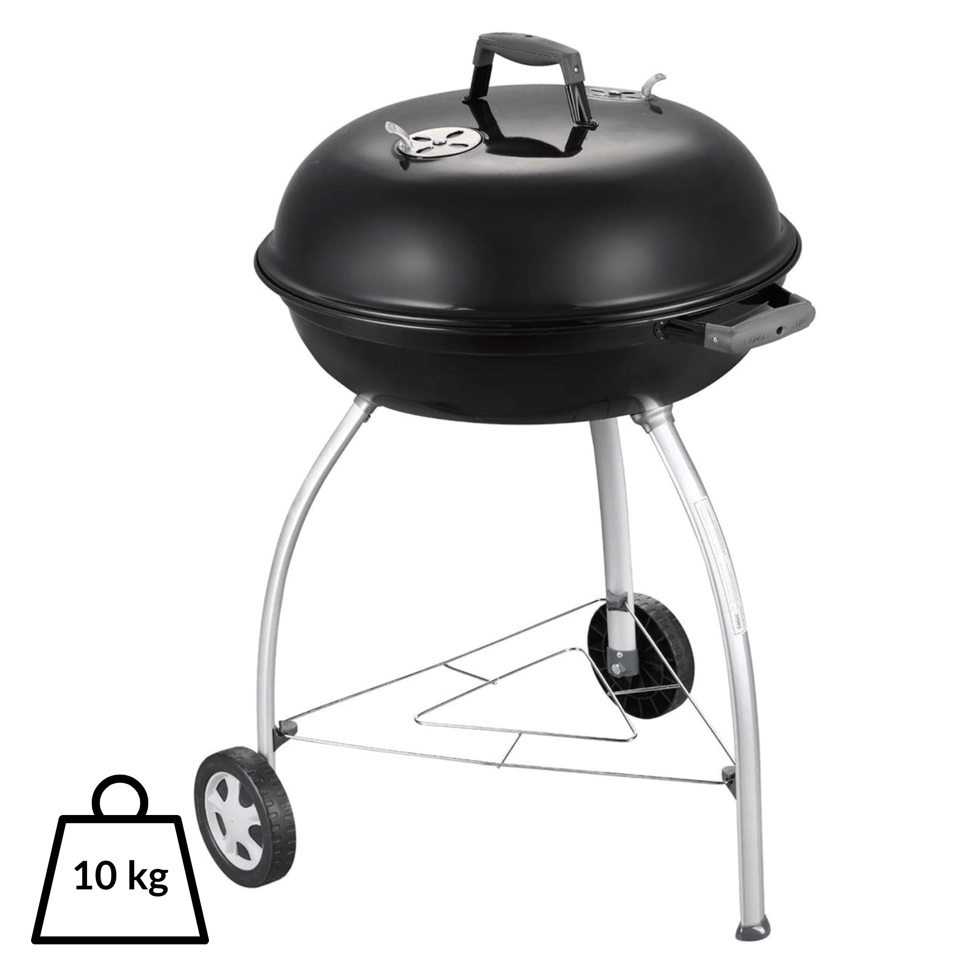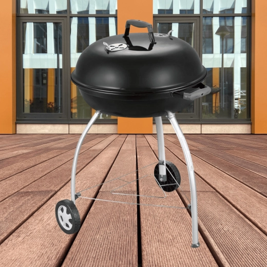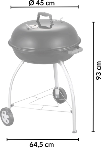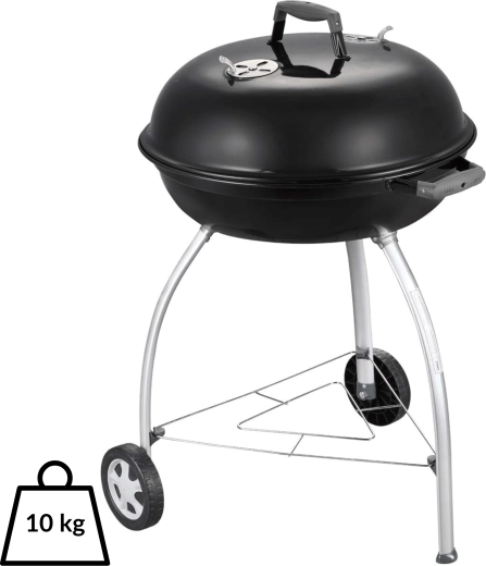 Díky velké ploše 54 cm připravíte šťavnaté steaky, zeleninu i celé porce pro rodinu a přátele. Přehnuté, smaltem kryté hrany chrání proti korozi, praktický úchyt v poklopu umožní jeho zaháknutí o mísu jako zábranu proti větru. Dvě kolečka a tři pevné nohy zajišťují stabilitu i snadnou mobilitu na terase či zahradě.