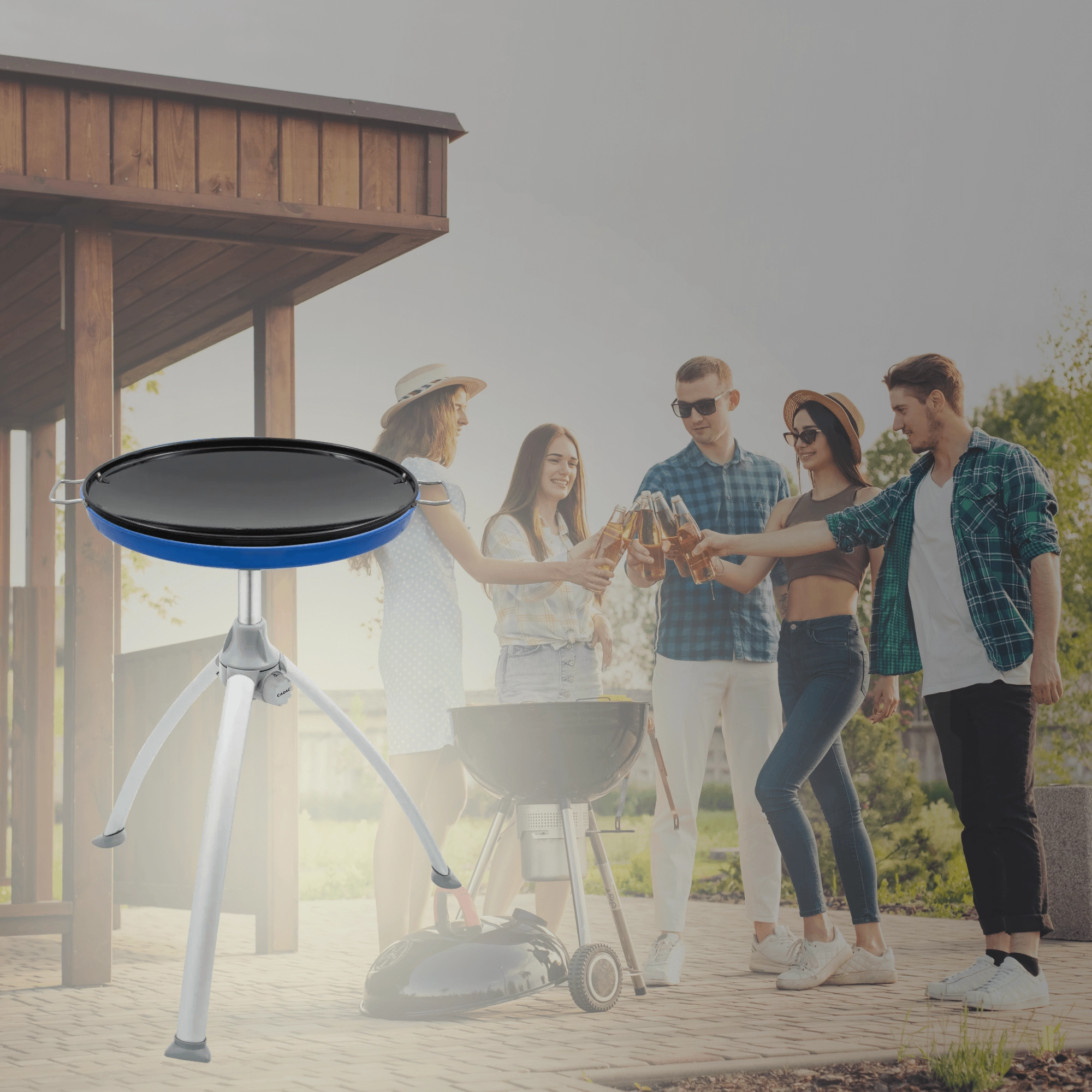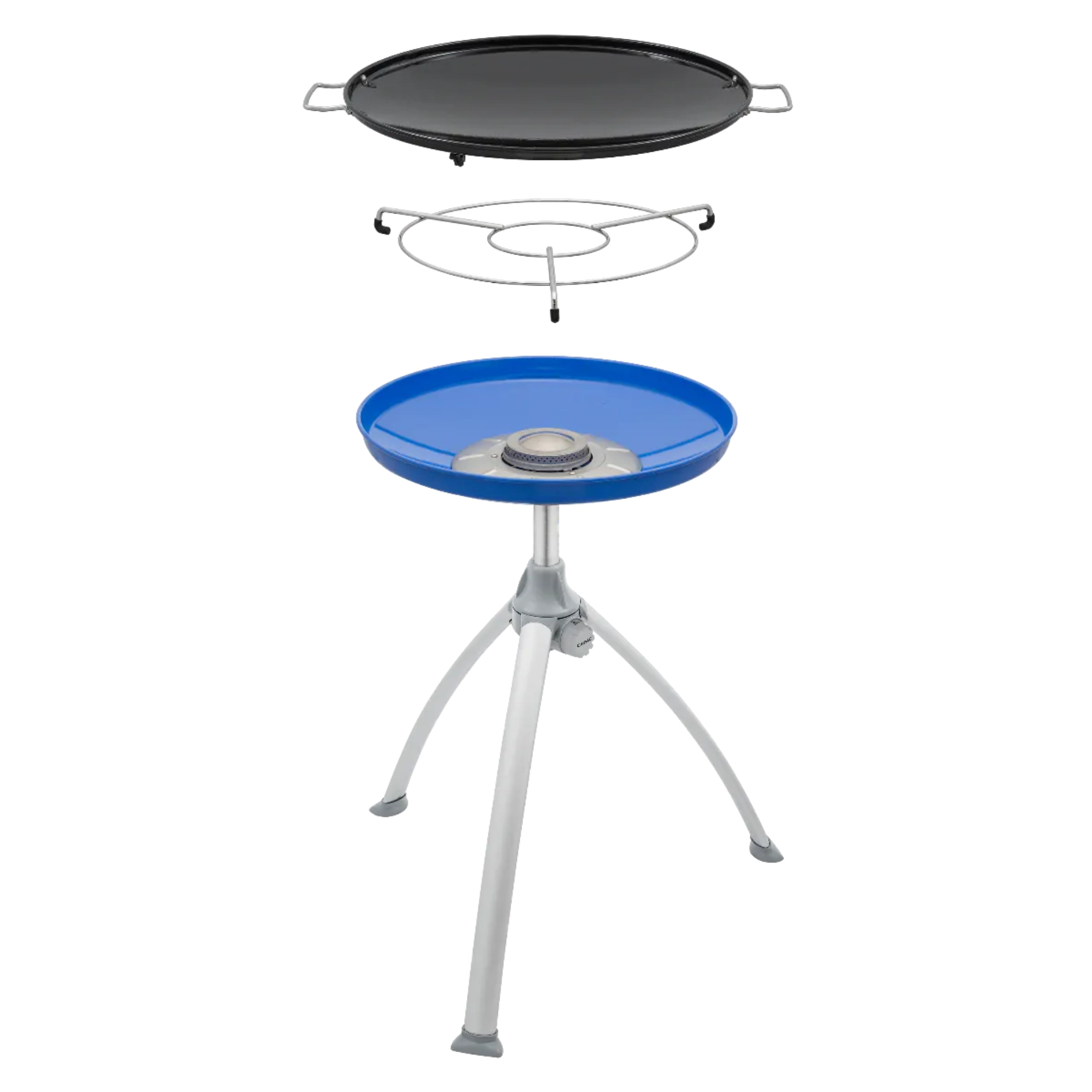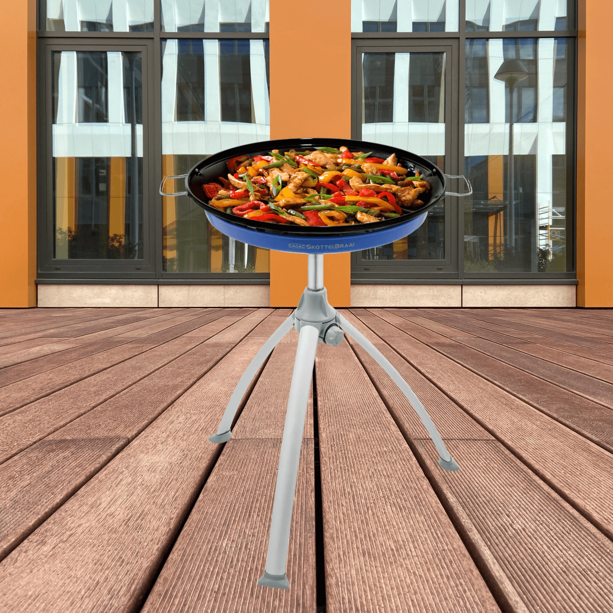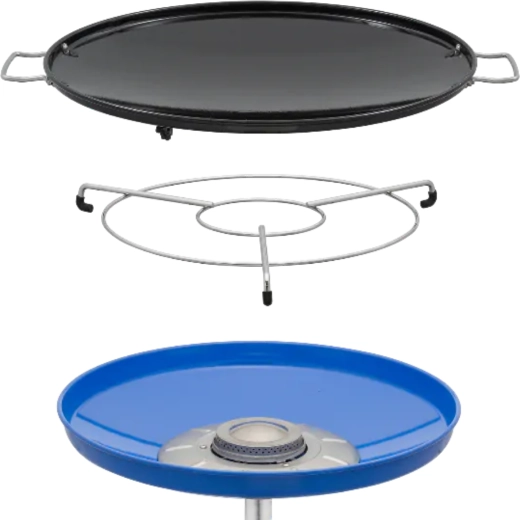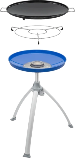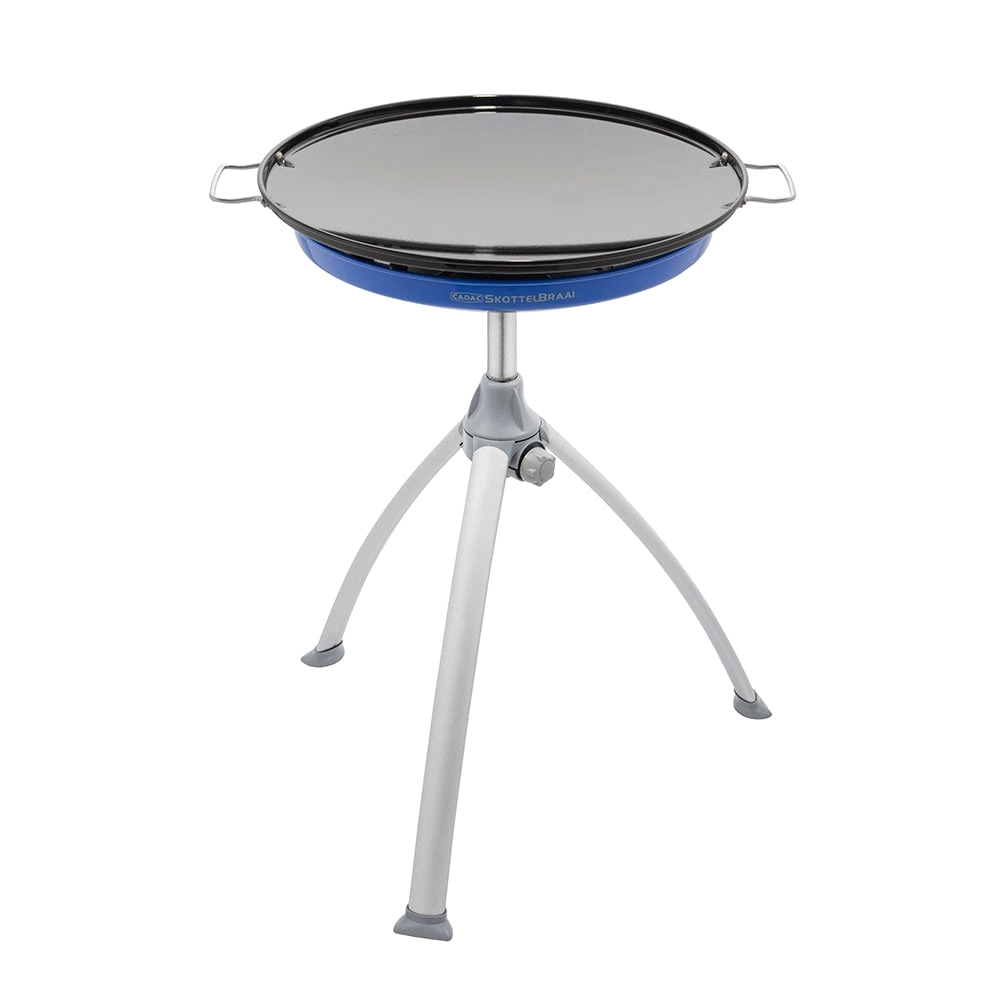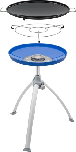 Univerzální a přenosný plynový gril CADAC Skottel Braai s průměrem 48 cm je ideální na kemping, zahradu i výlety. Nabízí velkou varnou plochu, stabilní trojnožku, nízkou hmotnost pod 6 kg a dvě vyměnitelné plochy – hladkou/žebrovanou desku a nástavec na hrnec. Díky výkonu 3 kW a rovnoměrnému rozvodu tepla snadno připravíte snídaně, paellu, asijské speciality i šťavnaté steaky.