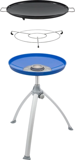 Lehká konstrukce se skládacími hliníkovými nohami a praktickou přepravní taškou zaručuje snadné přenášení i skladování. Odnímatelná police na koření udrží vše potřebné po ruce. Gril pracuje s opakovaně plnitelnou PB lahví (hadice a regulátor nejsou součástí balení).