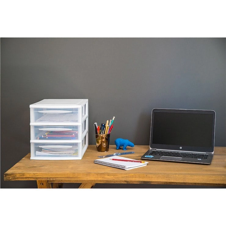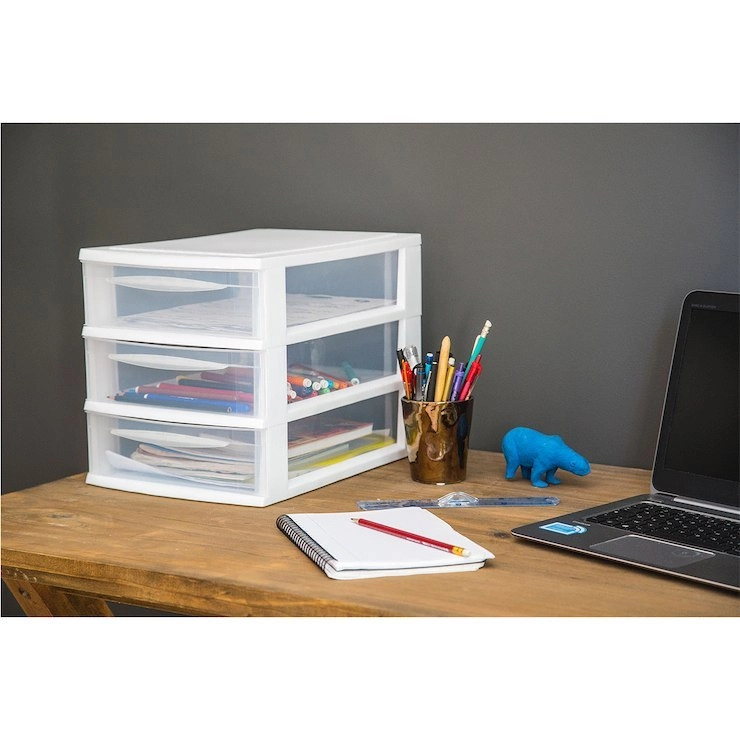 Tato modulární skříňka se 3 úzkými zásuvkami A4 je ideální pro uložení poznámek, psacích potřeb, nůžek, spon, kabelů, USB pamětí či CD. Stohovatelná konstrukce umožňuje umístit více jednotek na sebe nebo vedle sebe a vytvořit tak systém přesně podle vašich potřeb. Díky kompaktním rozměrům skvěle sedne na poličku i pracovní stůl.