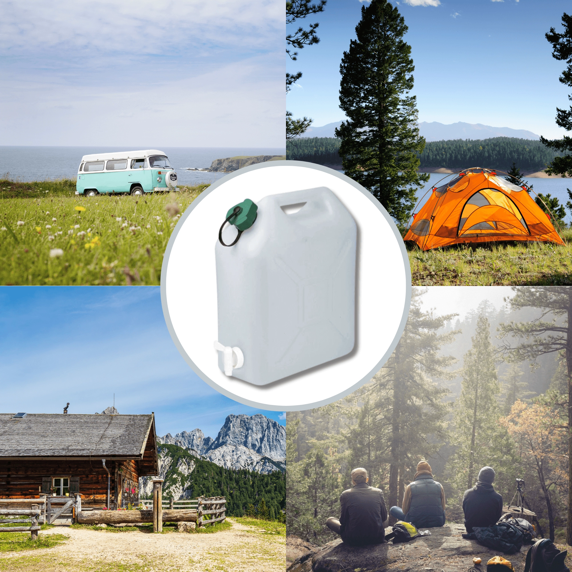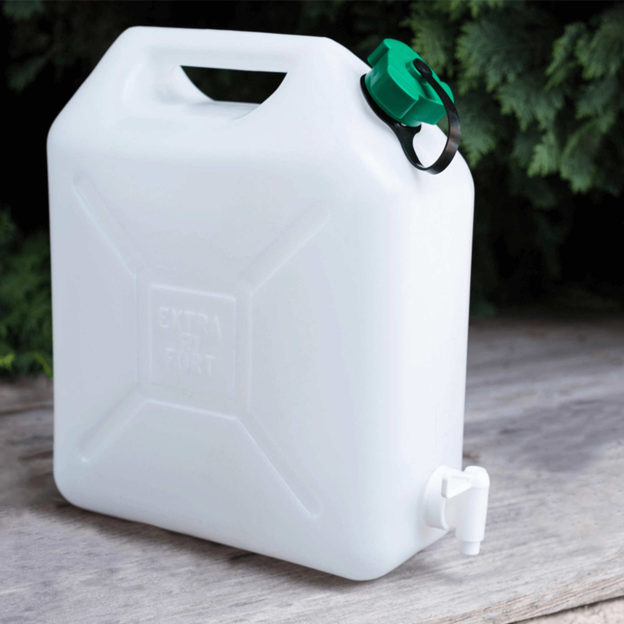Integrovaný kohoutek umožňuje přesné dávkování bez rozlévání a plýtvání. Široký plnicí otvor se šroubovacím víčkem zajišťuje snadné naplnění i čištění. Perfektní volba pro kemping, cestování, pikniky, dílnu i mytí rukou mimo dosah vody.