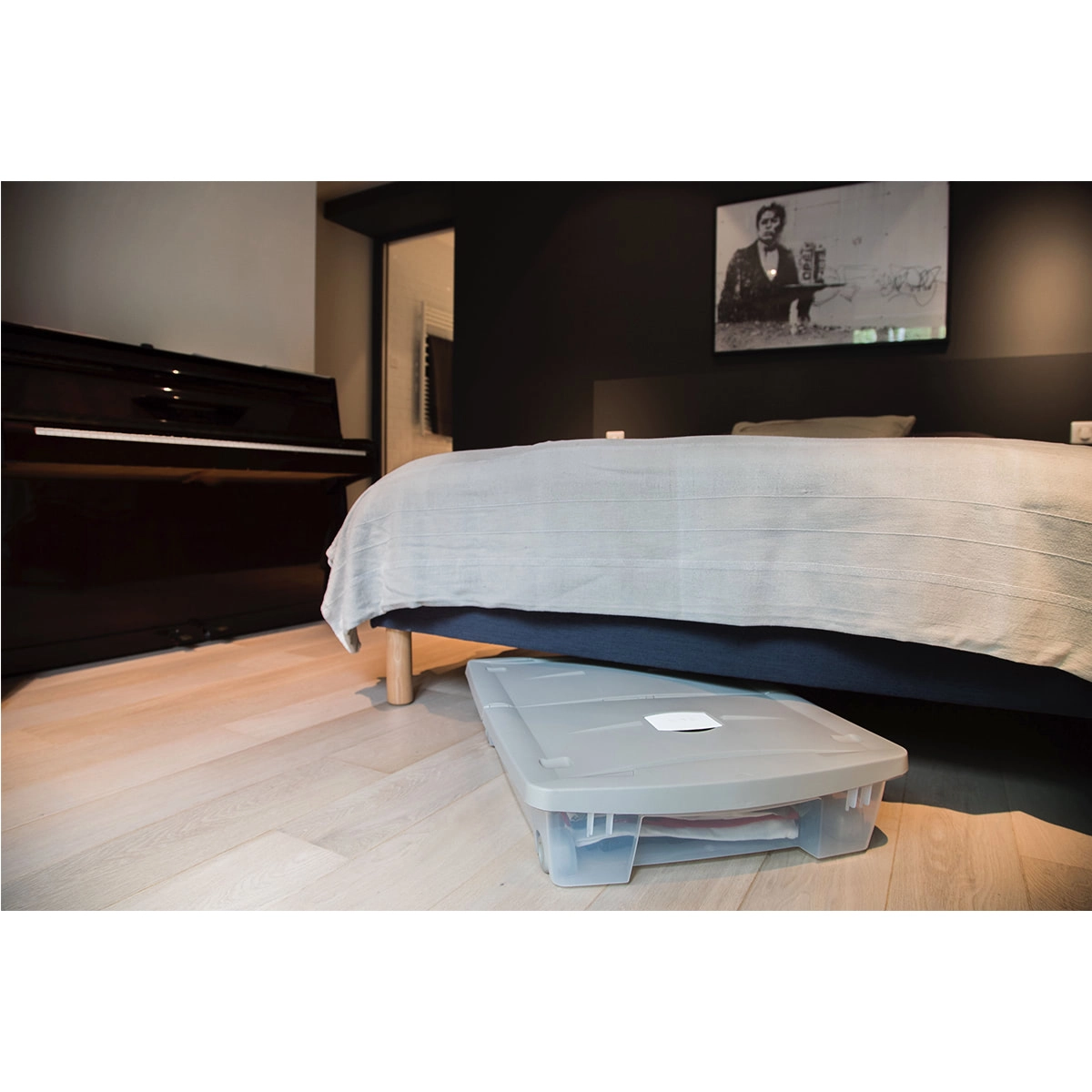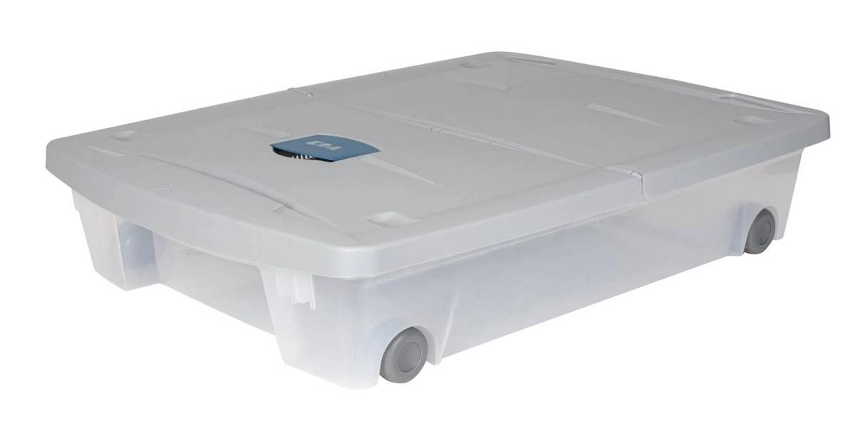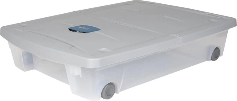 Udělejte pořádek v ložnici, šatně i dětském pokoji. Tento plochý plastový box se světle šedým víkem vám pomůže efektivně uložit sezónní oblečení, boty, ložní prádlo nebo deky. Průhledné stěny umožní ihned vidět obsah, víko chrání před prachem a díky kolečkům box jednoduše vysunete i z úzkého prostoru pod postelí.