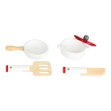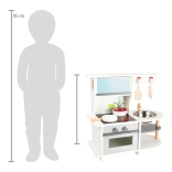 Díky robustní konstrukci z dřeva a kovu je tato kuchyňka odolná a poskytuje řadu interaktivních zážitků. Dodává se s obrázkovým návodem k montáži a základní sadou příslušenství.