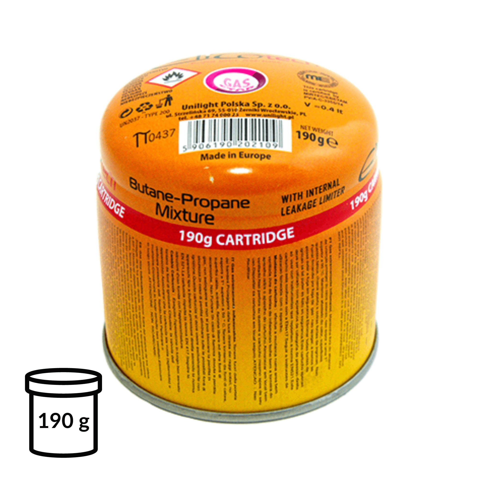 Bezpečnost je na prvním místě: kartuše je vybavena vnitřním omezovačem úniku (GAS STOP) a splňuje evropské bezpečnostní standardy. Díky jasnému značení a jednoduché obsluze je ideální volbou pro kempování, turistiku, karavaning i nouzové použití.