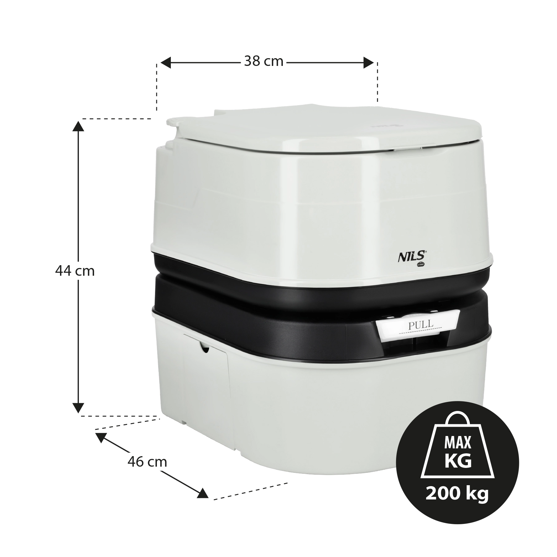 Praktická přenosná toaleta NILS Camp s objemem odpadní nádrže 24 l a nádrží na čistou vodu 20 l nabízí maximální pohodlí, dlouhou výdrž bez vyprazdňování a ukazatel naplnění. Díky ručnímu splachování, těsnému šoupátku a odolné konstrukci je ideální na kempování, do karavanů, na loď i jako záložní řešení.