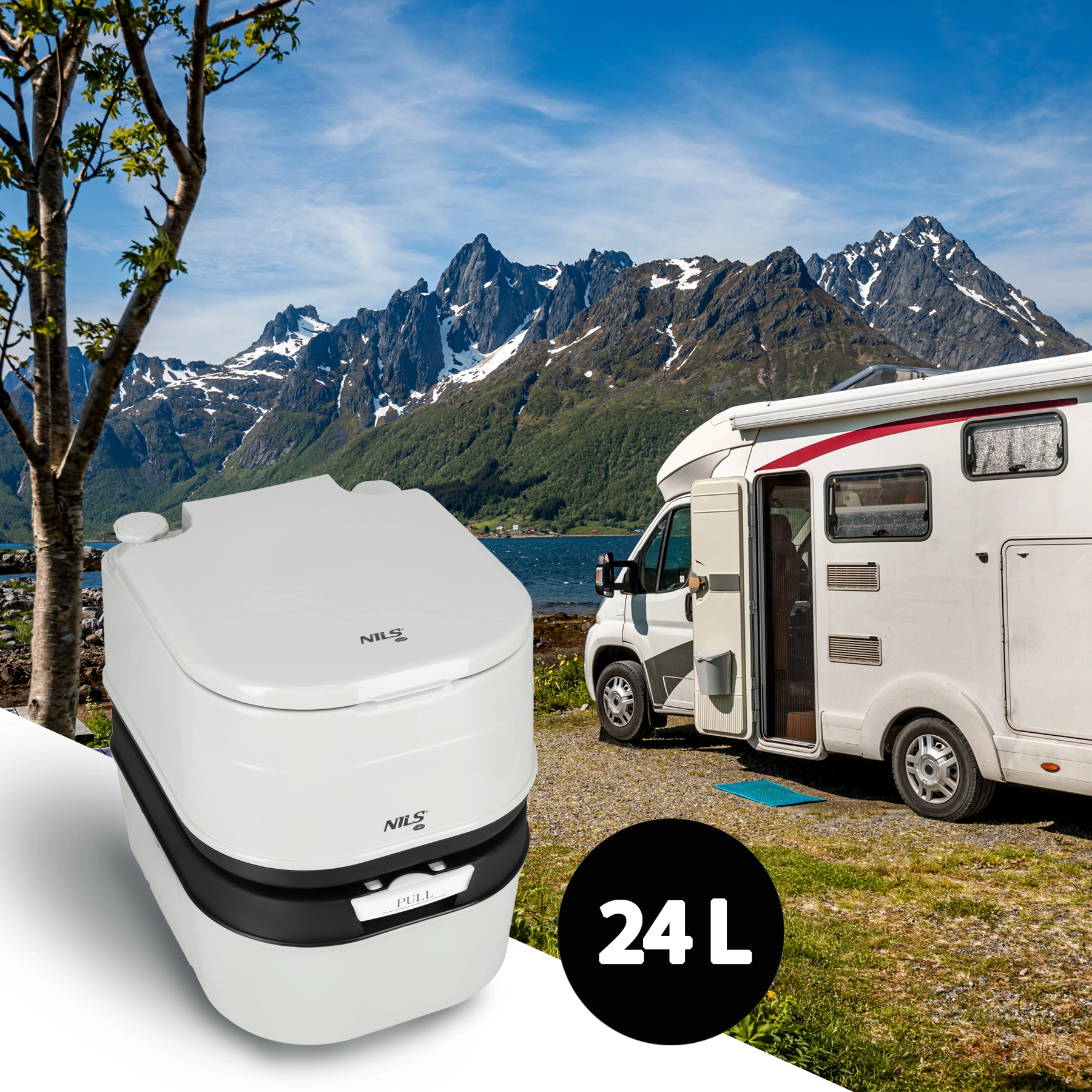 Užijte si svobodu na cestách s toaletou NILS Camp, která kombinuje velkou kapacitu, snadné používání a hygienickou konstrukci. Dvě samostatné nádrže (20 l na čistou vodu a 24 l na odpad) umožňují bezstarostné používání po několik dní, zatímco ukazatel naplnění vás včas upozorní na potřebu vyprázdnění.