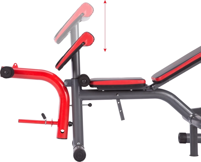 Nastavitelná zádová opěra a sedák s více polohami umožní přesně volit intenzitu a zacílení cviků od negativního až po šikmý bench.