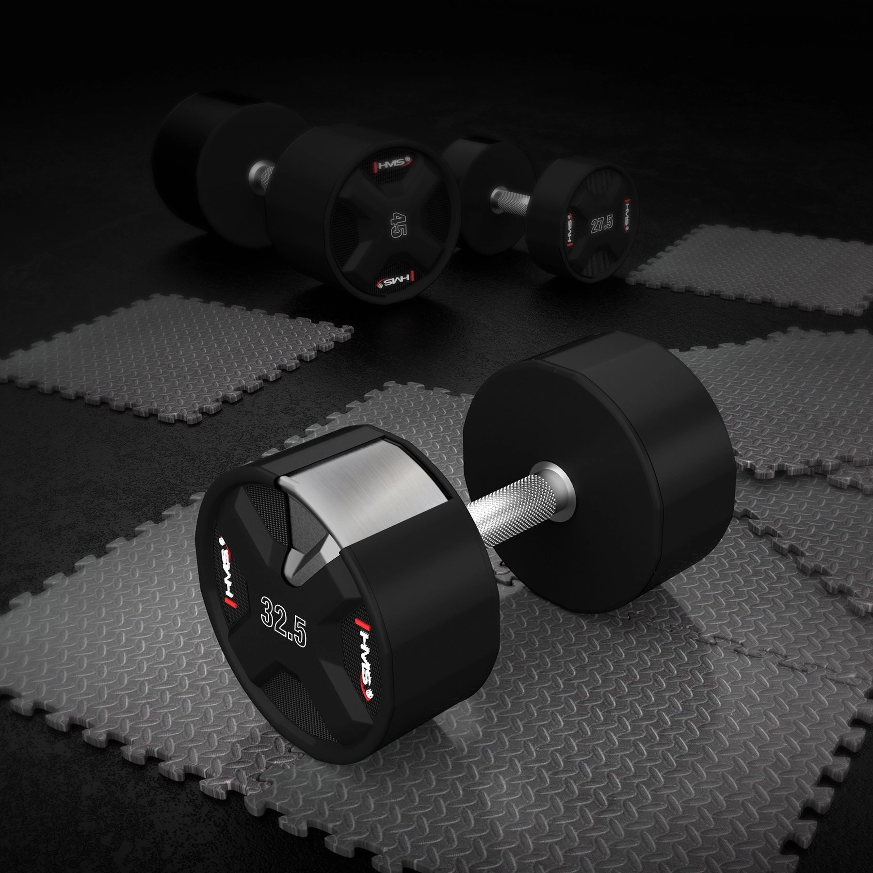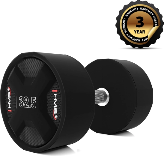 Jednoručka HMS 32,5 kg je navržena pro intenzivní silový trénink v komerčních i domácích posilovnách. Ocelové jádro potažené litým polyuretanem (CPU) zaručuje mimořádnou odolnost vůči nárazům a pádům a elegantní vzhled, který dlouhodobě vydrží bez poškození či zápachu.