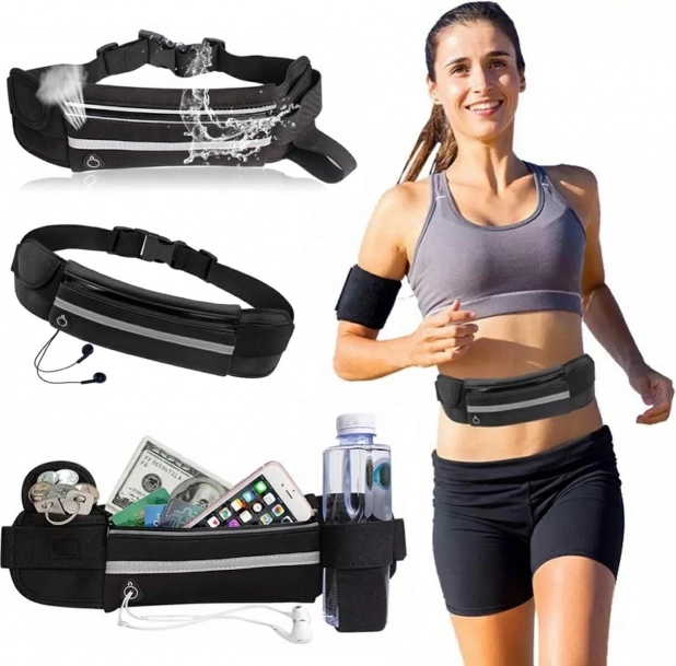 Pro větší bezpečnost je opasek vybaven reflexním prvkem na vnější straně kapsy a otvorem pro kabelová sluchátka, abyste mohli poslouchat hudbu bez kompromisů. Elastický, měkký a velmi lehký materiál spolu s nastavitelnou délkou 77–96 cm zajišťuje perfektní usazení na těle.