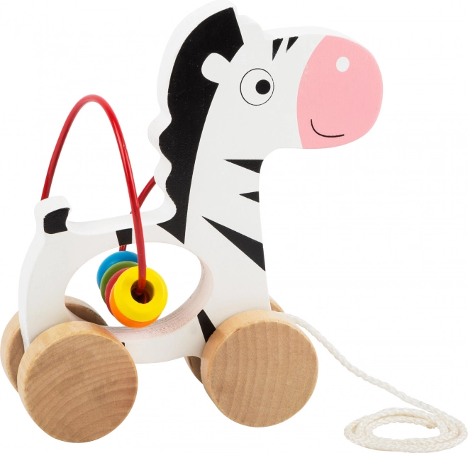 Zebra nabízí hravé provedení na kolech s možností pohybu díky provázku. Díky korálkové dráze si děti mohou zlepšovat motorické dovednosti.