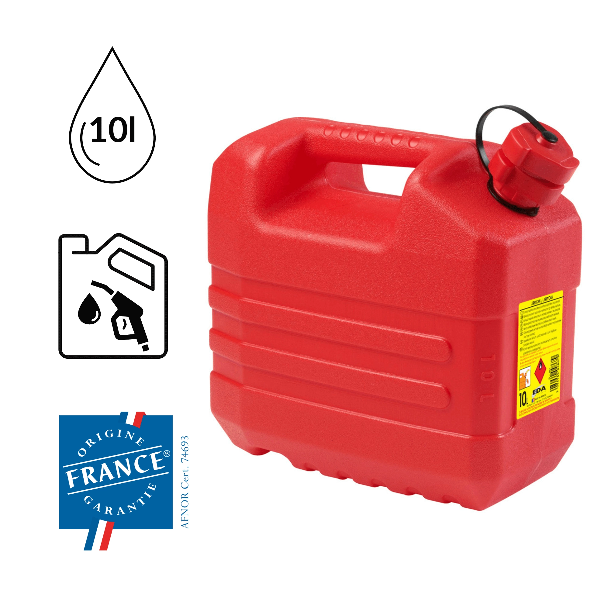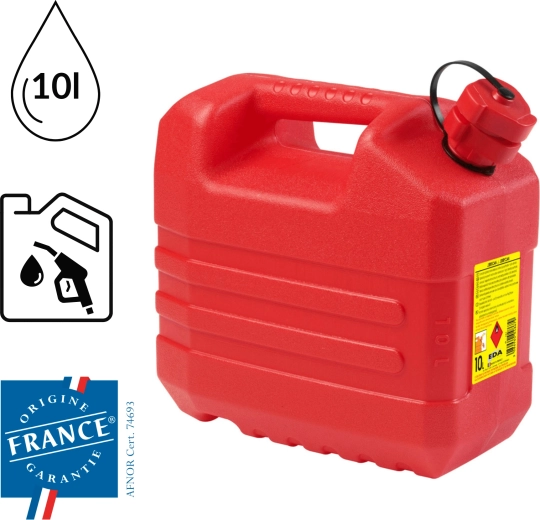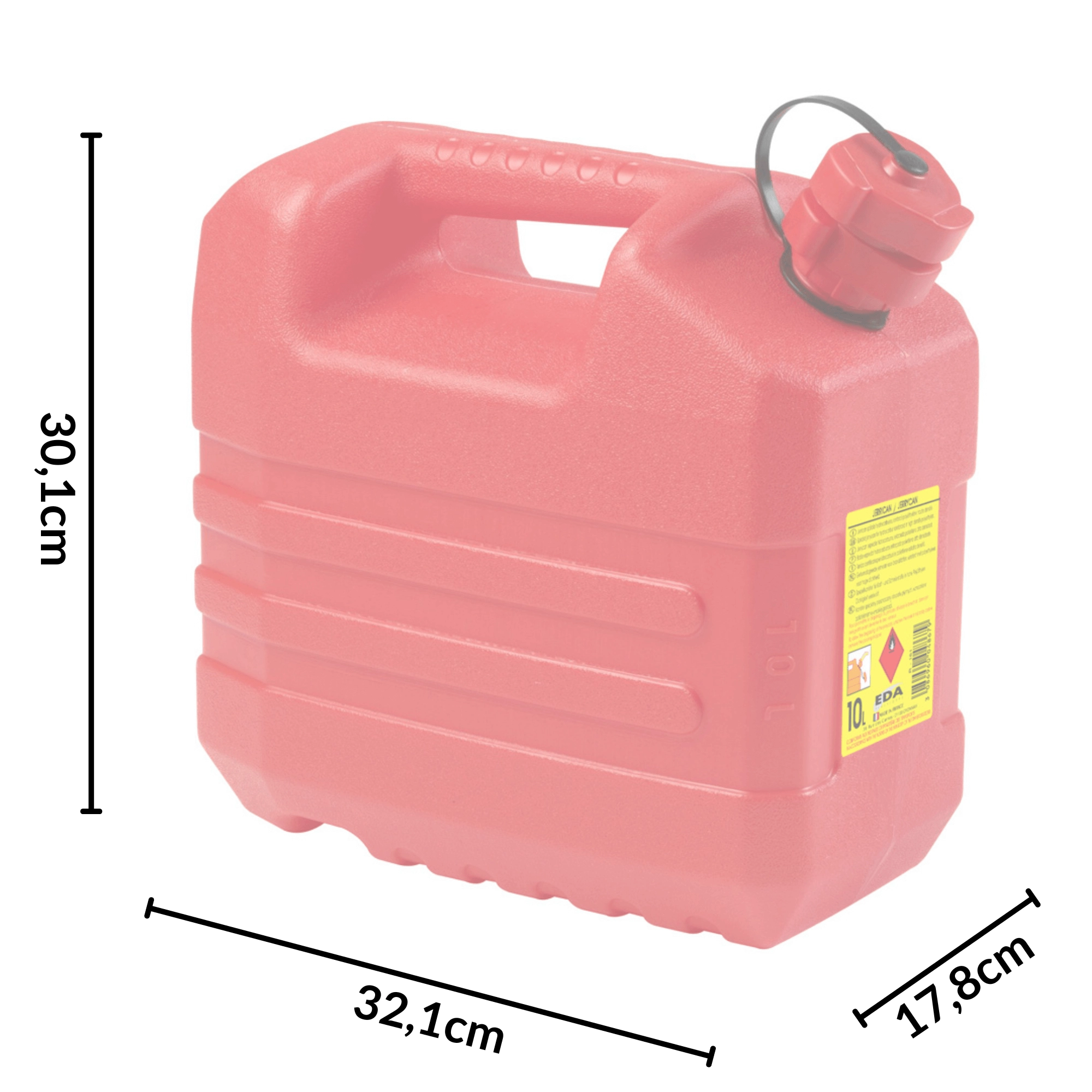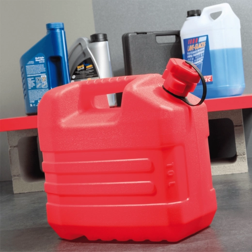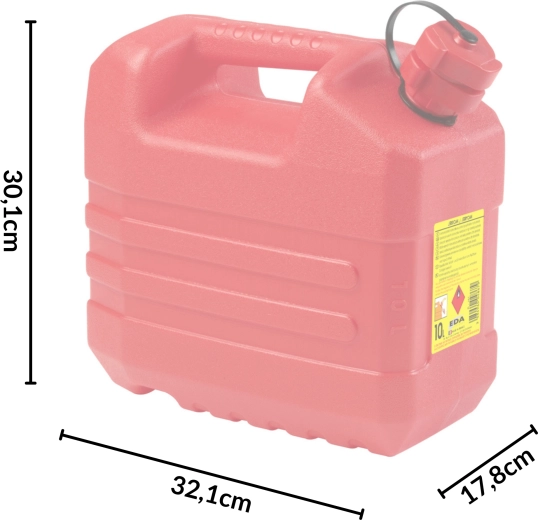 Praktický kanistr na palivo o objemu 10 l pro každodenní použití v dílně, na zahradě i na cestách. Vyroben z odolného plastu pro bezpečné a těsné skladování, s výsuvnou nálevkou pro přesné a čisté nalévání a ergonomickým madlem pro pohodlné přenášení. Kompaktní rozměry a červená barva pro vysokou viditelnost zvyšují bezpečnost i komfort používání.