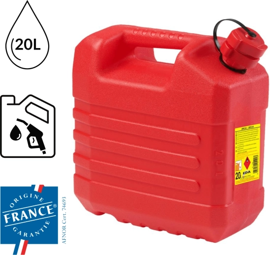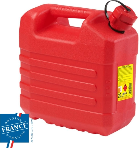 Odolná plastová konstrukce z PP je lehká, nárazuodolná a vhodná pro bezpečné skladování benzínu i nafty.