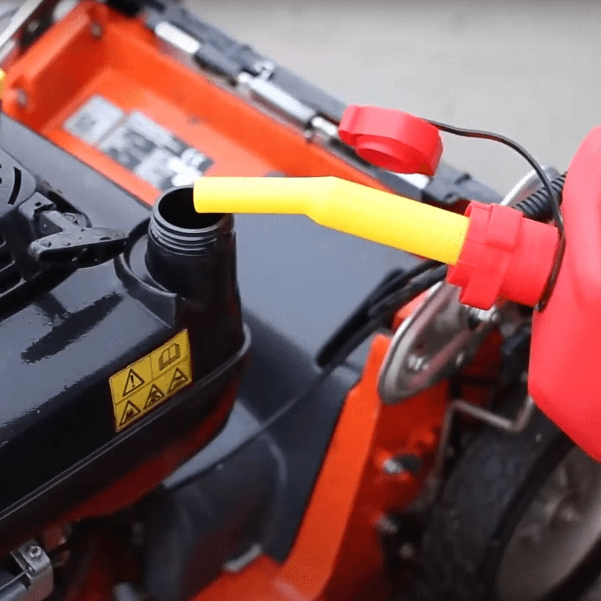 Integrovaná výsuvná nálevka a šroubovací uzávěr umožňují kontrolovaný průtok paliva přímo do nádrže nářadí či sekačky – bez kapek a nepořádku.