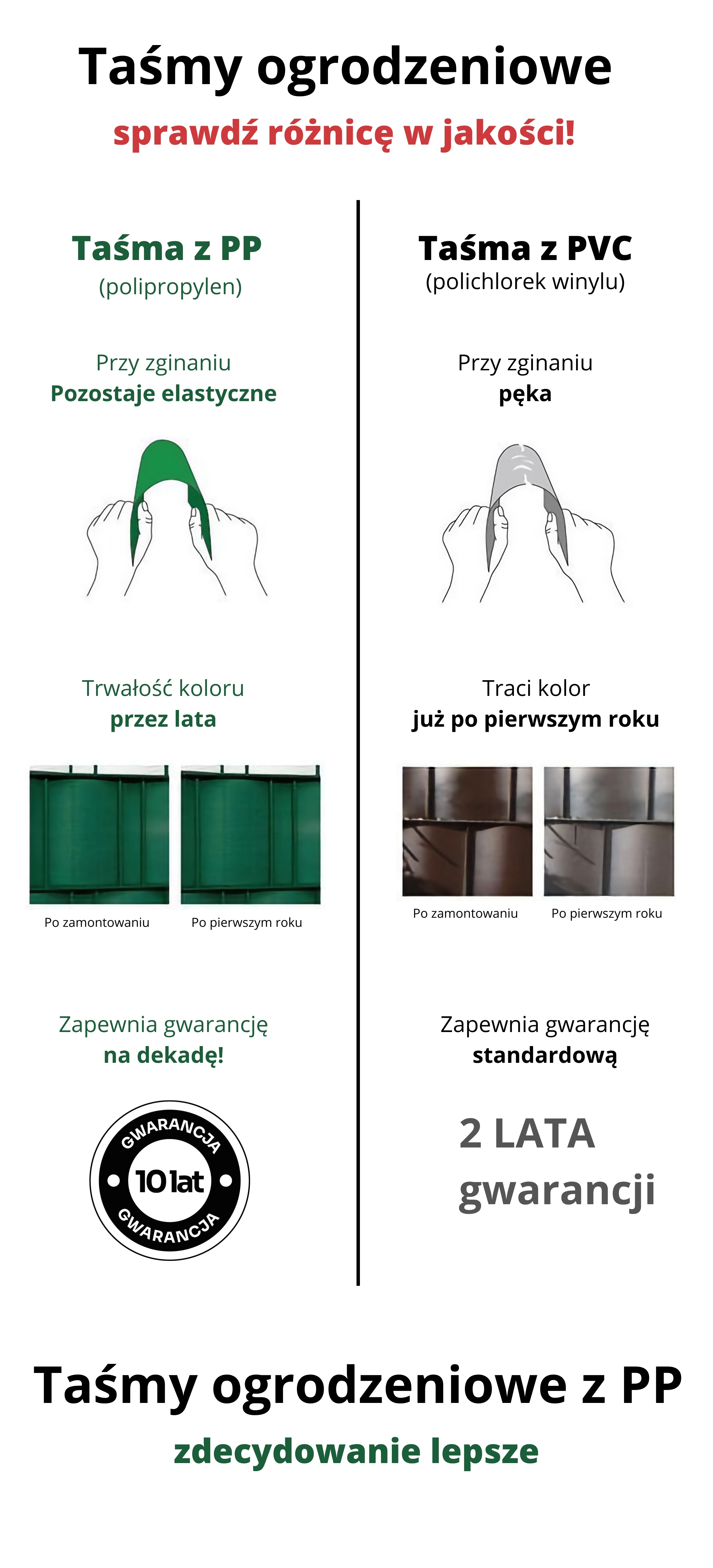 Polypropylen je stabilizovaný proti UV, mrazu a výkyvům teplot. Zachovává barvu i pružnost, nepraská a nevyžaduje dodatečné ochranné nátěry.