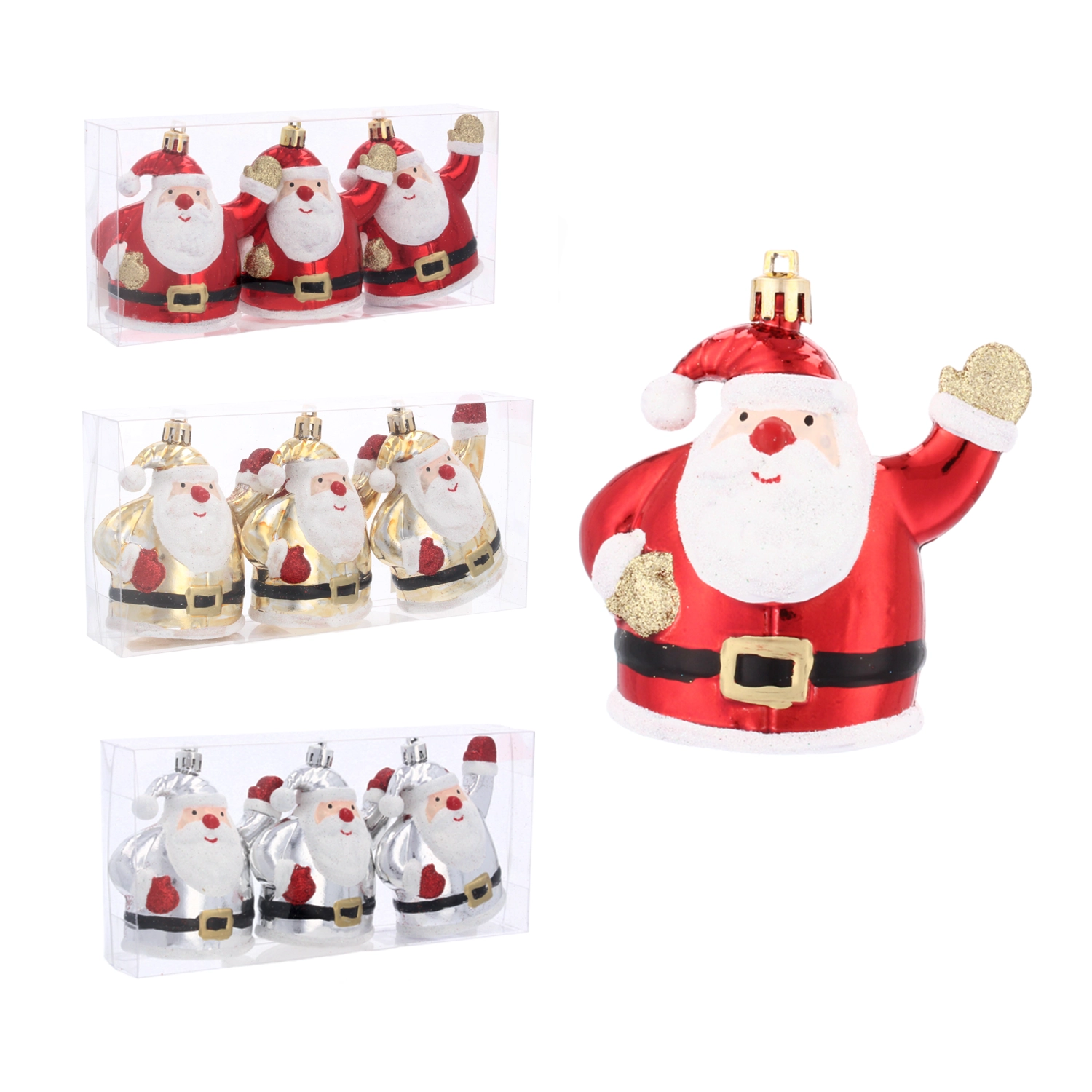 Vánoční ozdoby Santa Claus, sada 3 ks, stříbrné