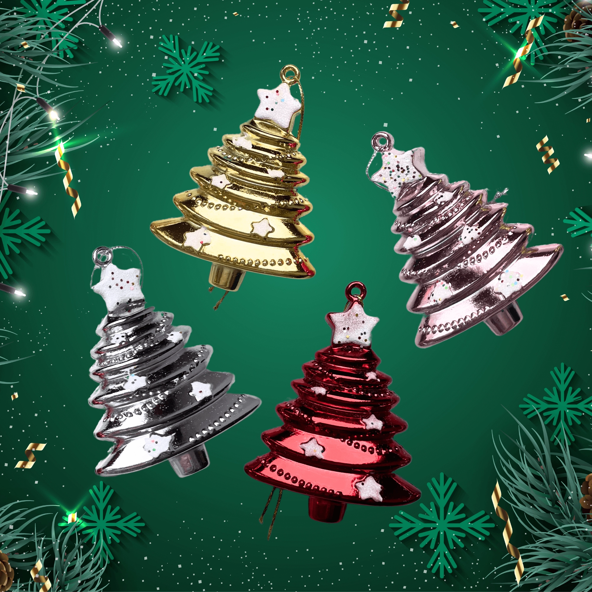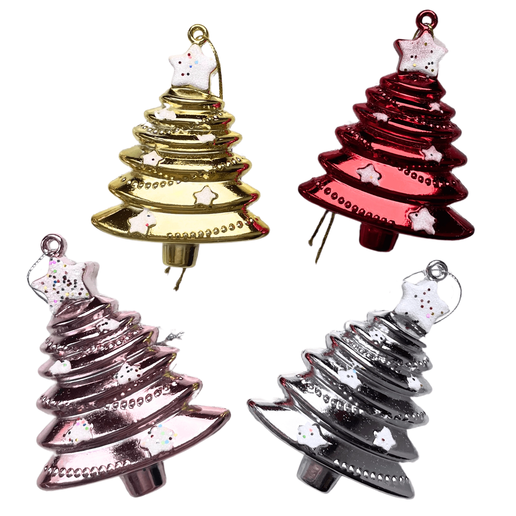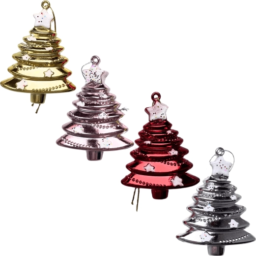 Vánoční ozdoby stromek 11 cm, nerozbitné, mix barev – sada 4 ks