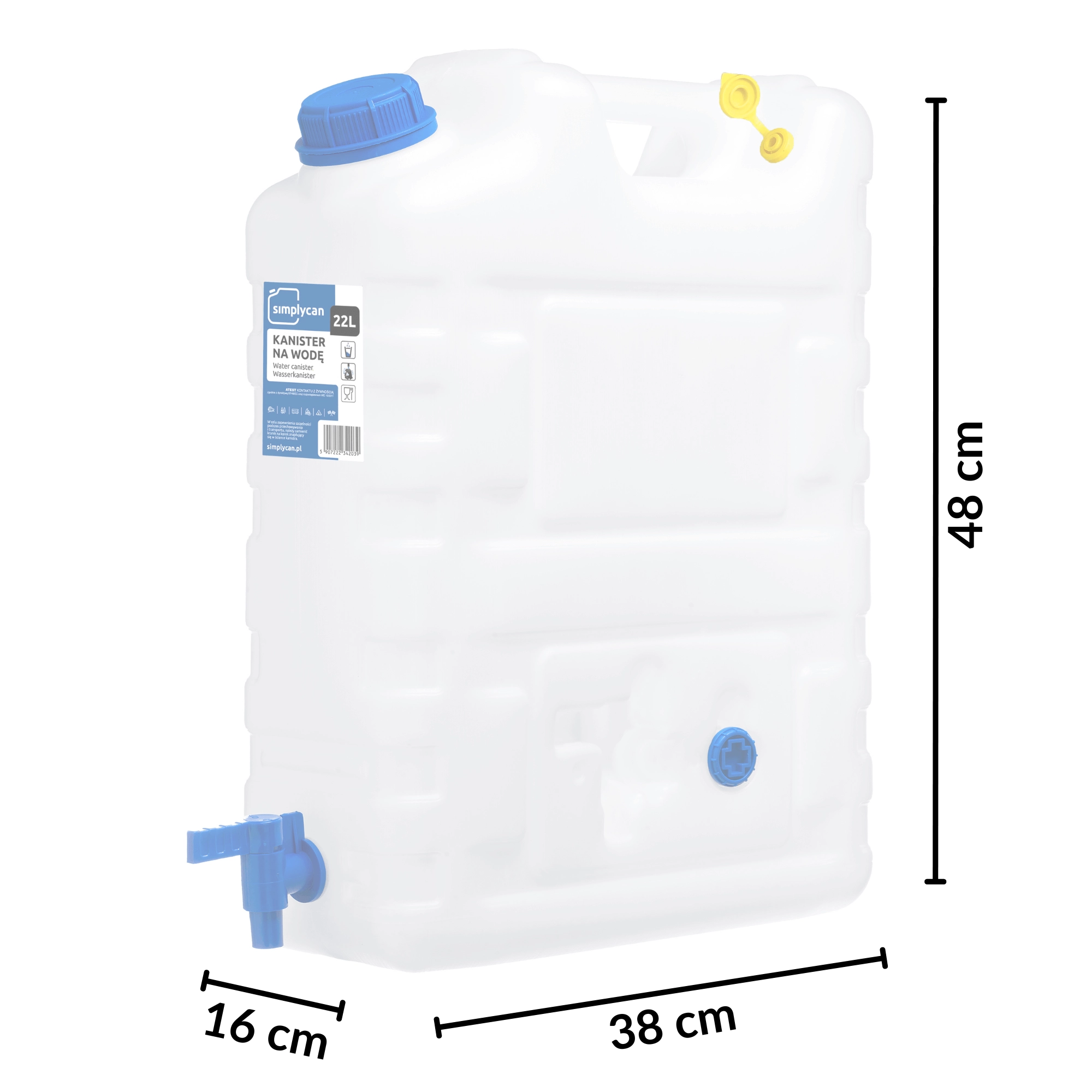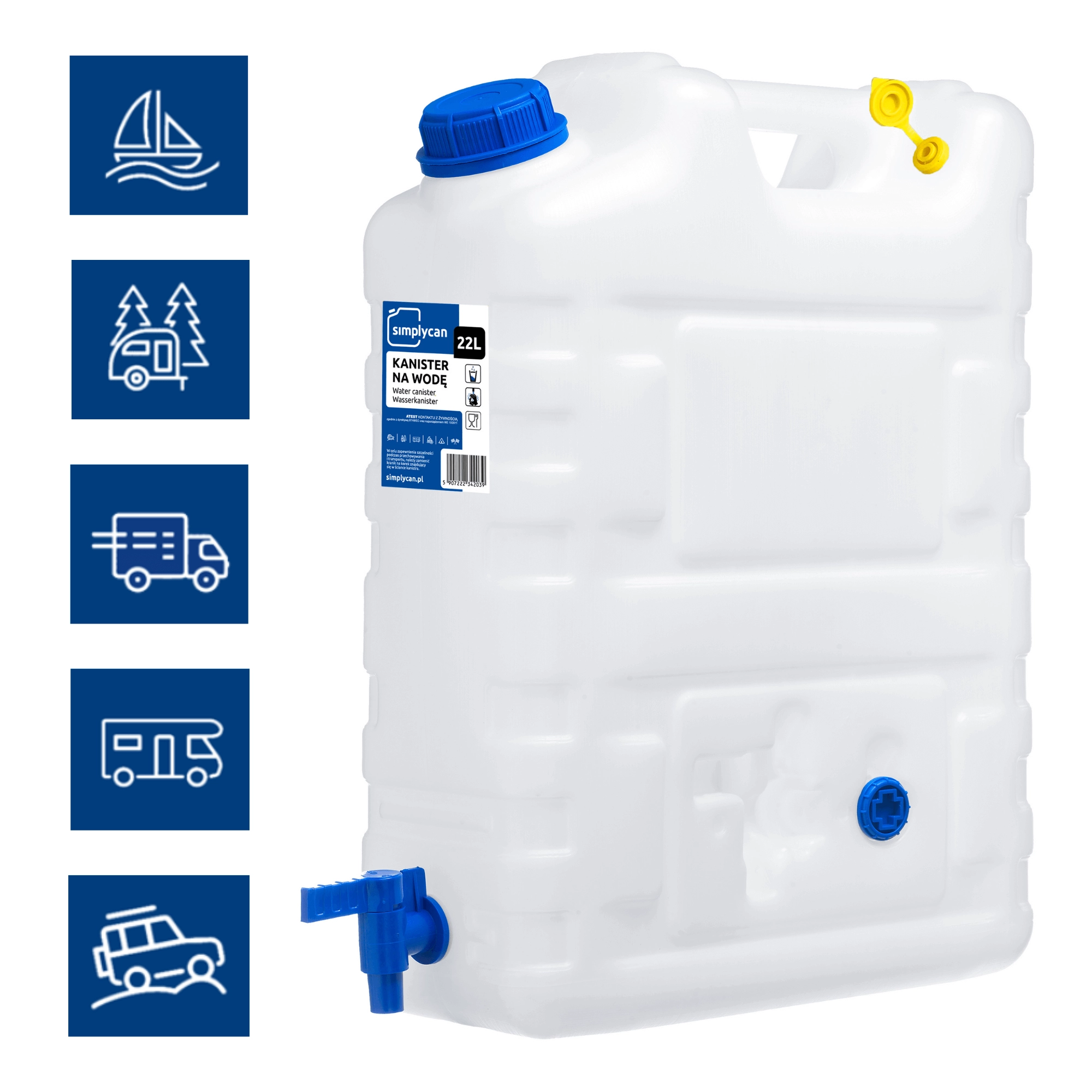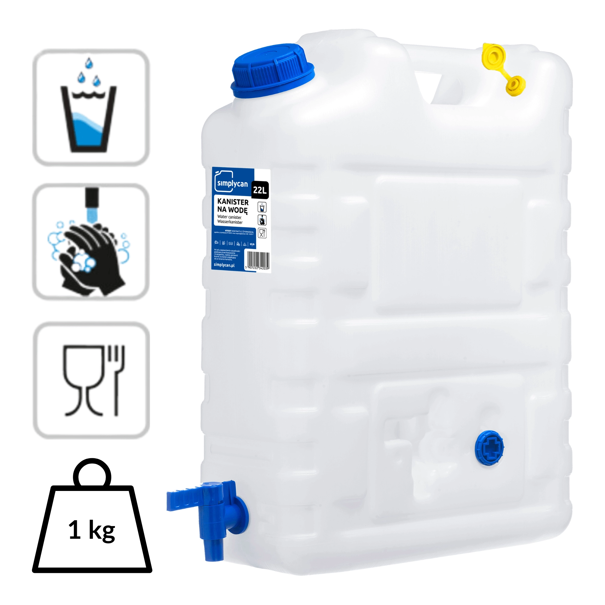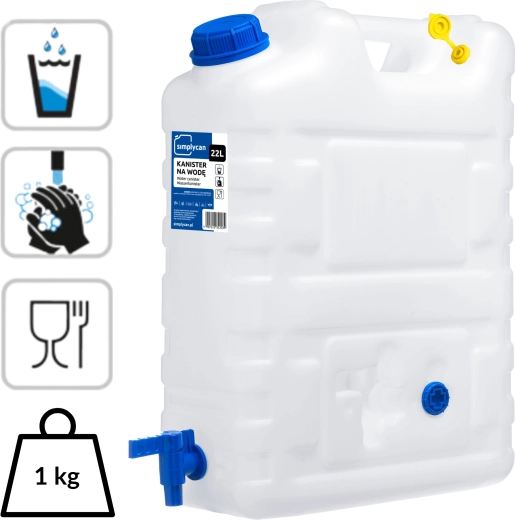 Hledáte spolehlivou nádobu na pitnou vodu na cesty? SimplyCan nabízí lehké, odolné a hygienické řešení. Integrovaný odvzdušňovací ventil zabraňuje podtlaku a zajišťuje plynulé dávkování vody z šroubovacího kohoutku. Díky širokému hrdlu se snadno plní a čistí, zatímco promyšlené zapuštěné uložení pro kohoutek a zátku brání jejich ztrátě a poškození.