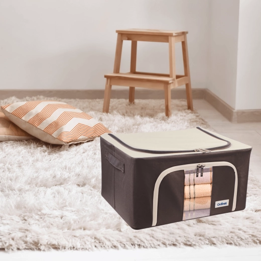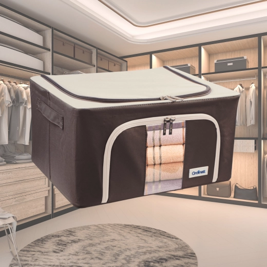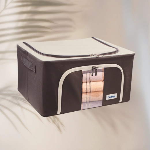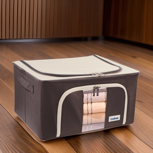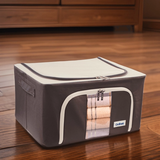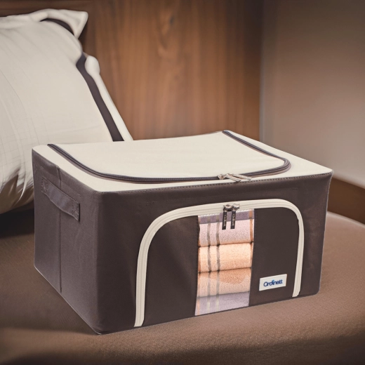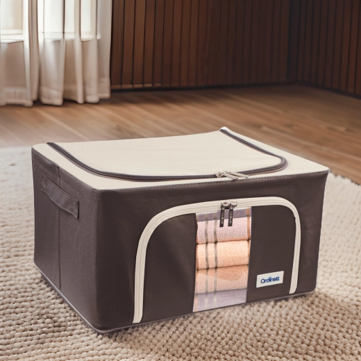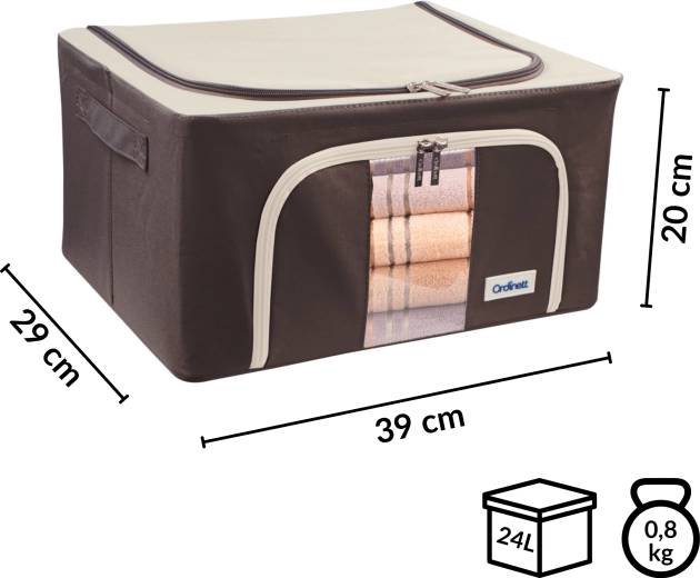 Úložný box Kamai Gio Style je praktické řešení pro přehledné uložení oblečení, ložního prádla, dek, ručníků i hraček. Zpevněná konstrukce se základním kovovým rámem drží tvar, a tak se box nedeformuje ani při plném naplnění. Průhledné okénko na přední straně vám umožní okamžitě vidět obsah bez otevírání.