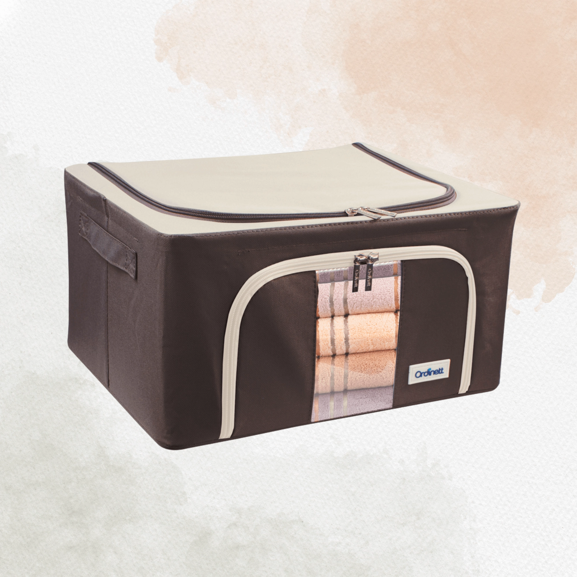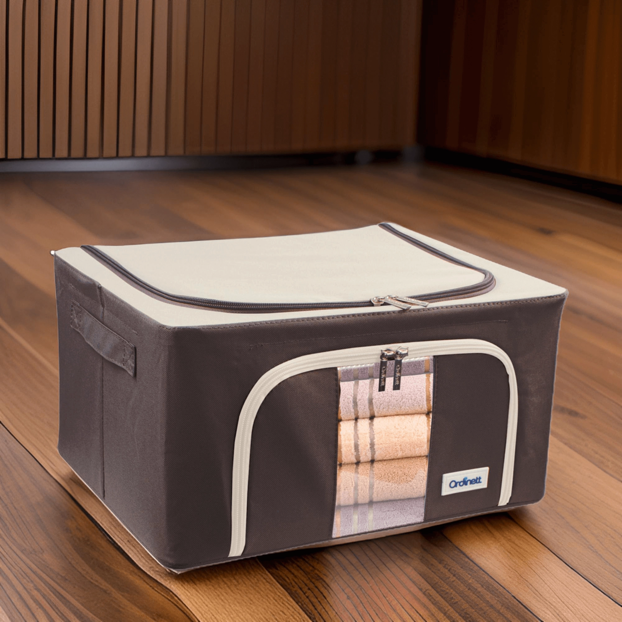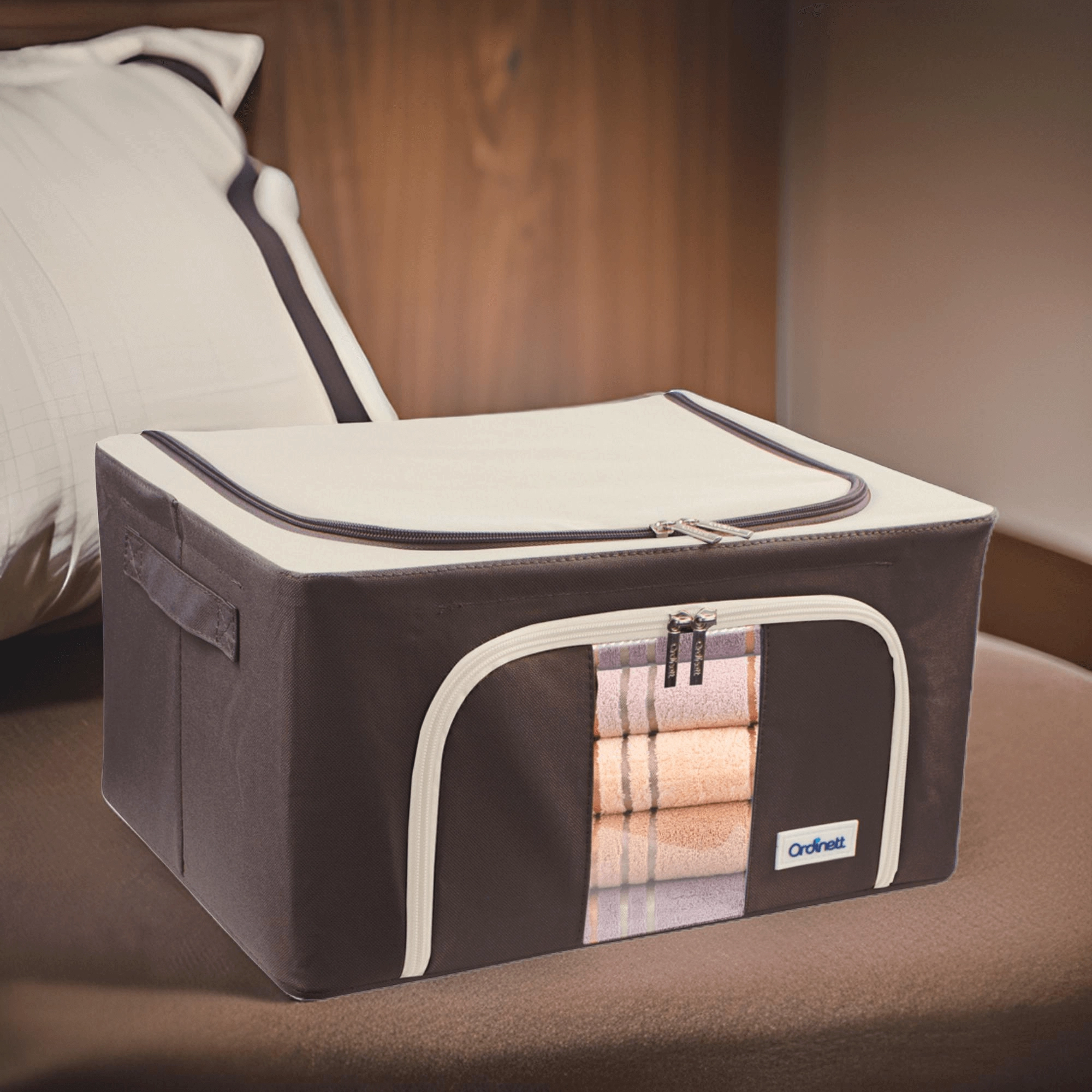 Oceníte také dvojité otevírání – horní a přední zip – pro rychlý přístup z police i z podpostele. Boční madla usnadňují manipulaci a přenášení. Nadčasové barevné provedení se hodí do šatny, ložnice, obývacího pokoje i dětského pokoje.