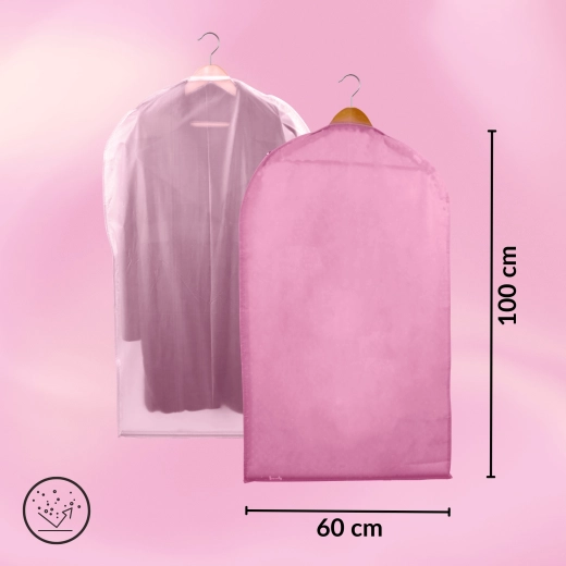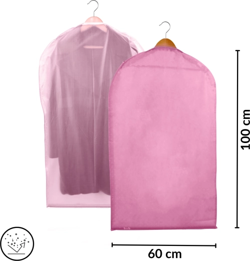 Udržujte šatník perfektně uspořádaný a oděvy jako nové. Tento růžový pokrowiec/obal z kvalitní netkané textilie chrání před prachem a nečistotami, má praktický zip po celé délce a horní otvor na ramínko. Díky poloprůhledné přední straně rychle najdete, co potřebujete. Ideální pro šaty, kabáty i košile – , , .
