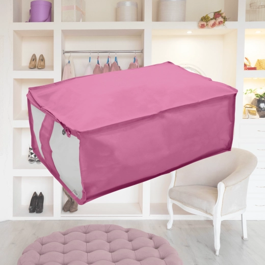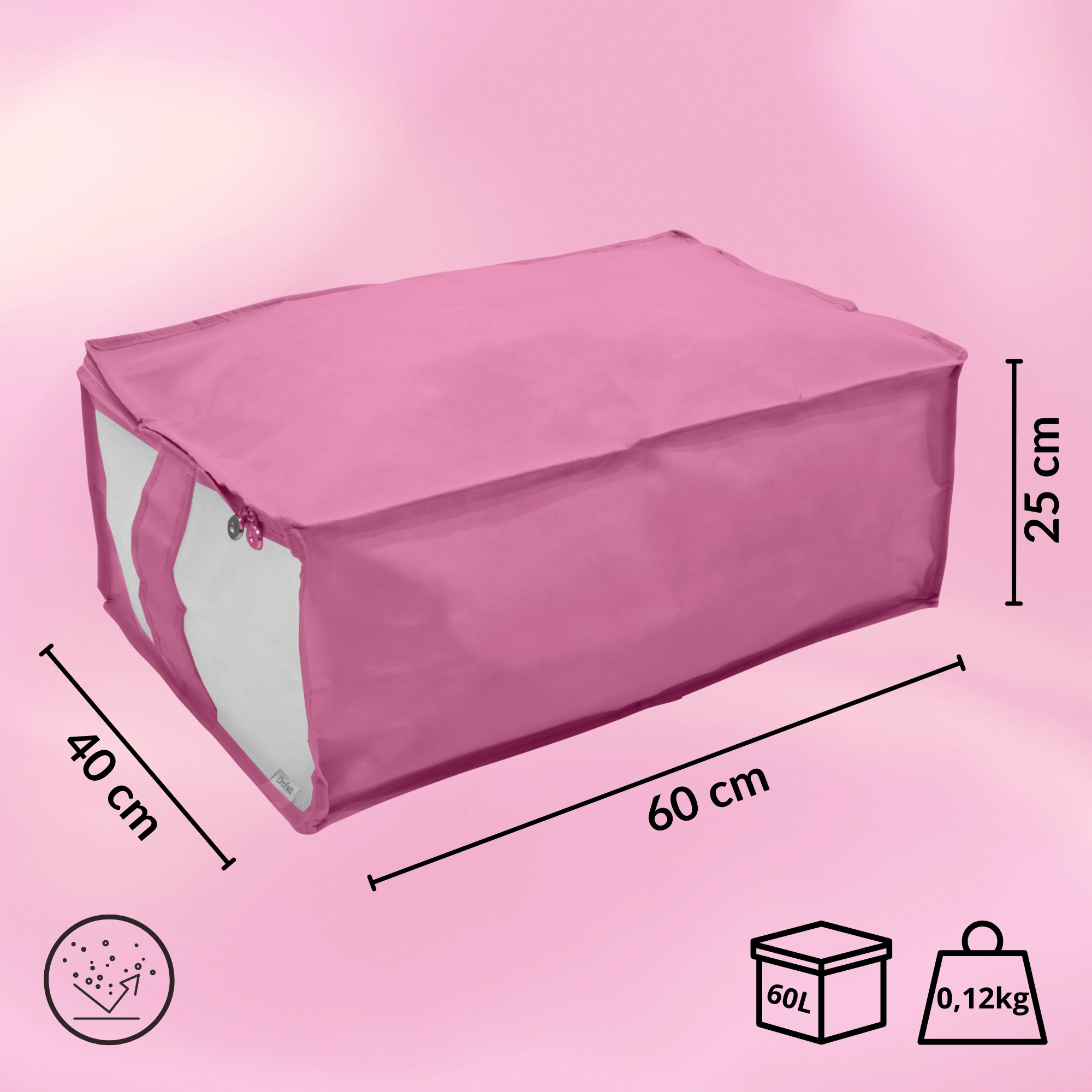 Elegantní růžový organizér KAMAI ORDINETT Blossom chytře využije prostor pod postelí nebo na skříni. Uložte ložní prádlo či sezónní oblečení bezpečně a mimo prach díky zipovému uzavírání a průhlednému okénku pro rychlý přehled obsahu. Lehká a odolná netkaná textilie, praktický obvodový zip a univerzální rozměr 46 × 60 × 25 cm dělají z tohoto boxu ideální řešení pro přehlednou domácnost.