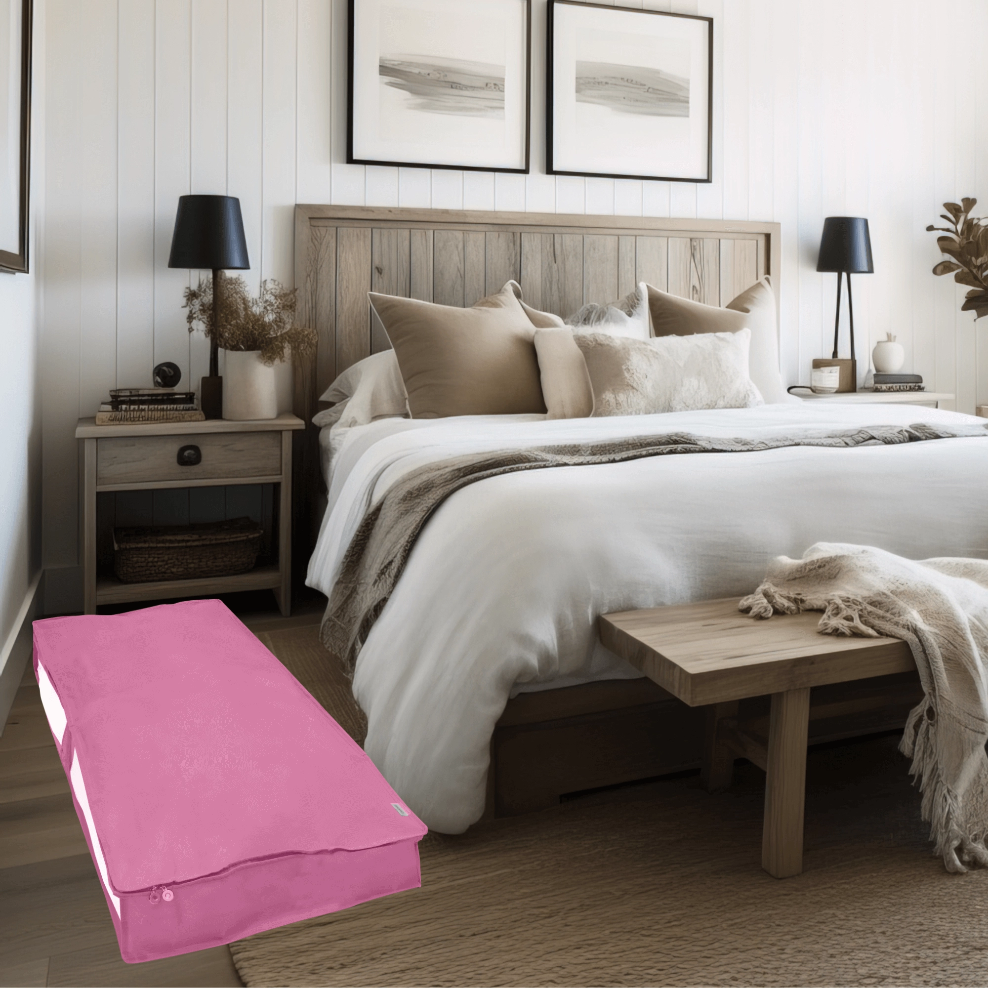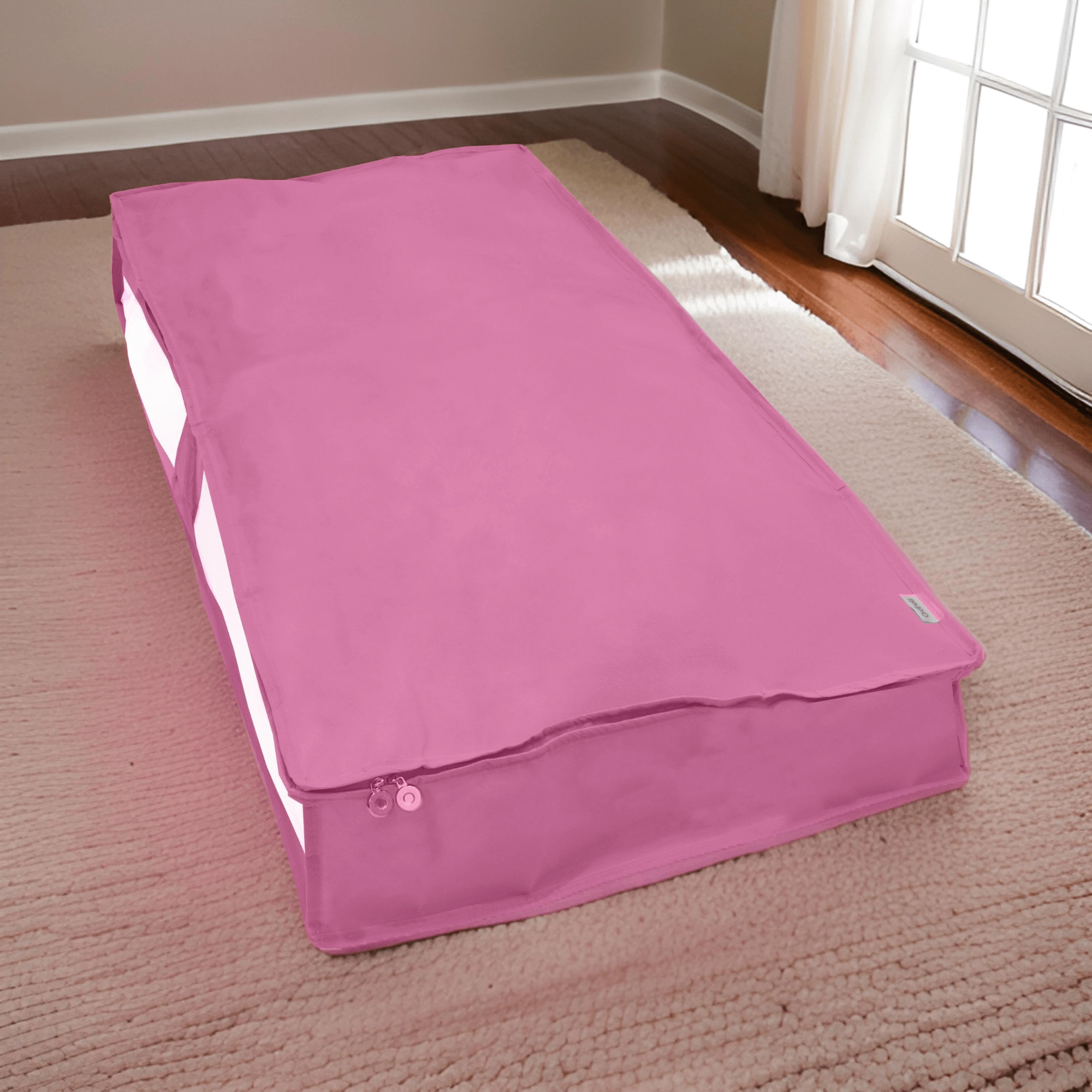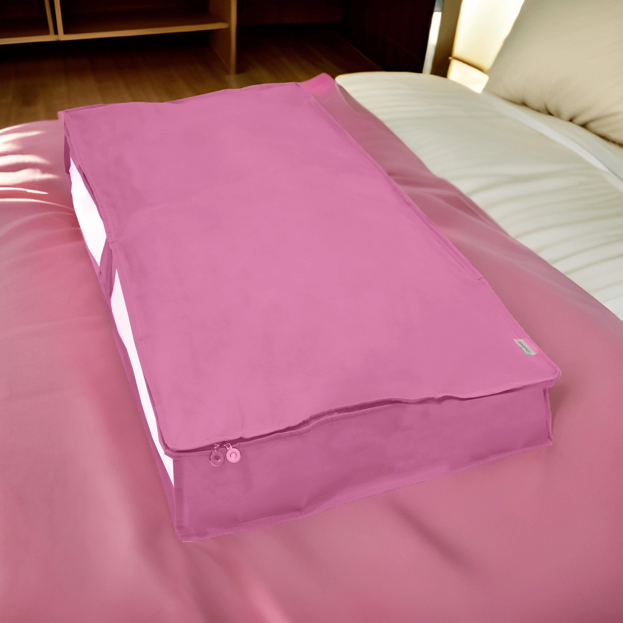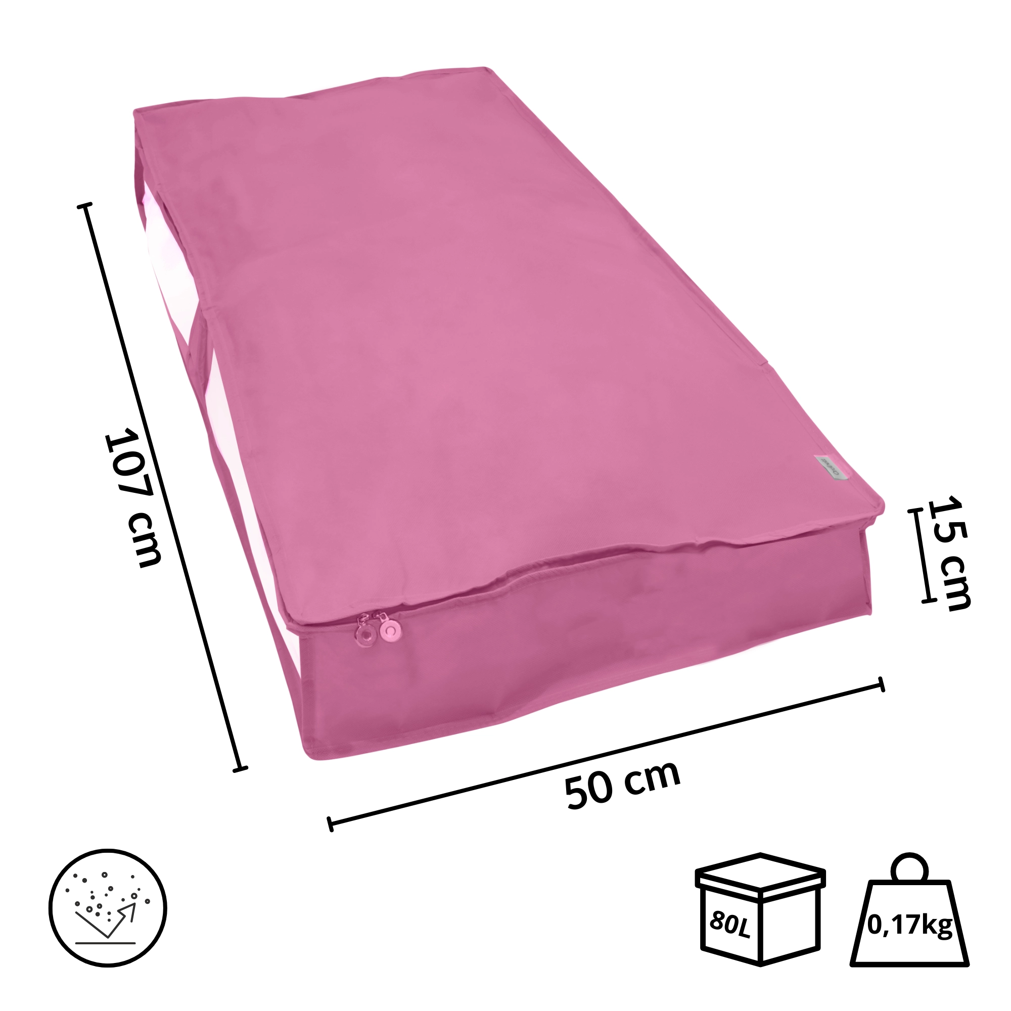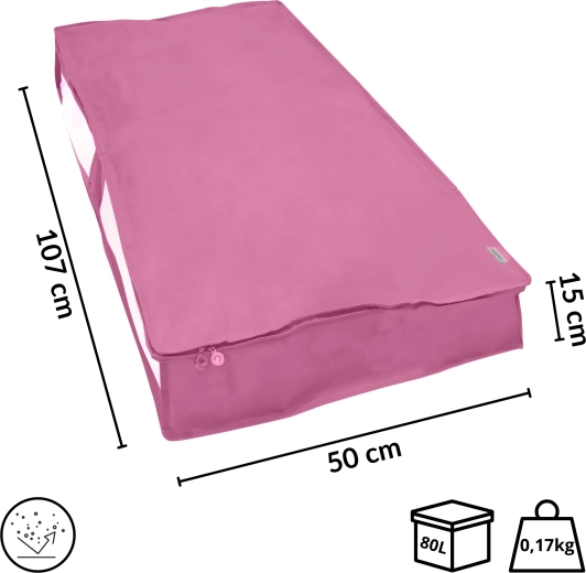 Konstrukce z nepropouštějící netkané textilie pomáhá udržet obsah v čistotě a bez prachu. Oboustranný zip usnadňuje otevírání i zavírání a plochý tvar je ideální pro zatažení pod postel nebo stohování ve skříni.