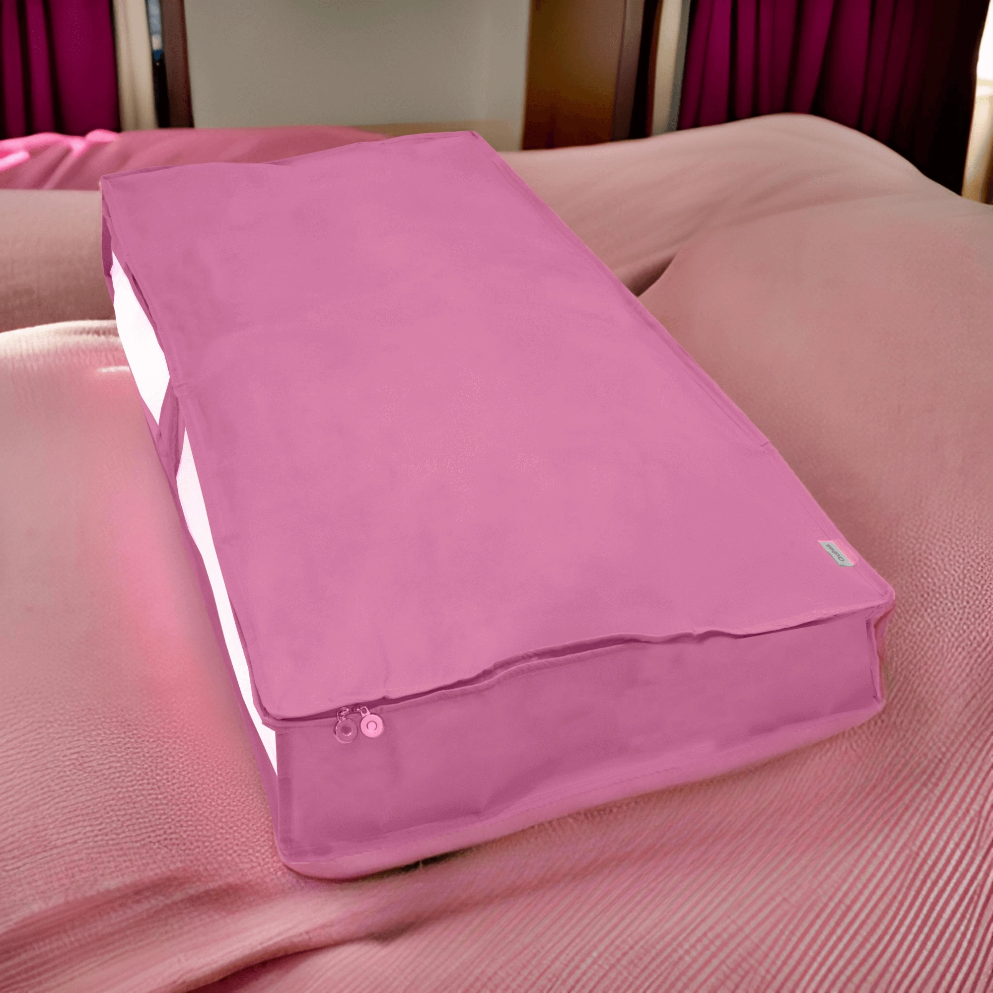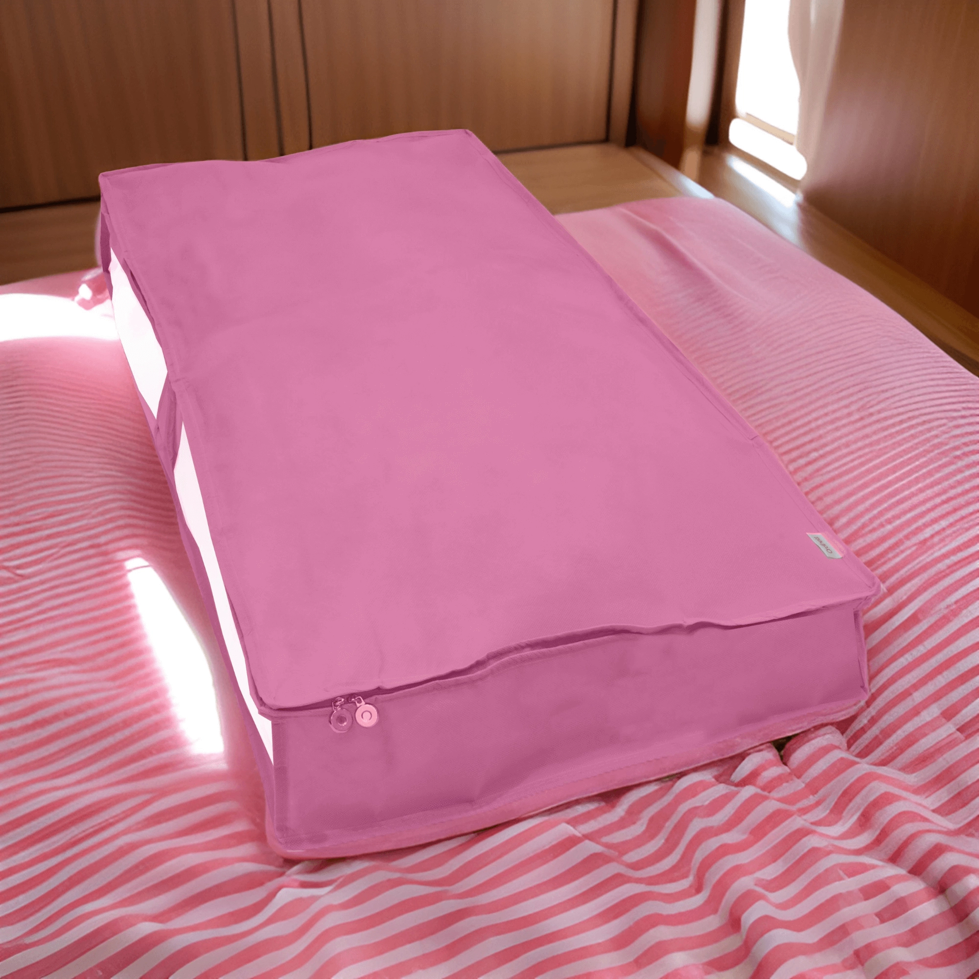 Uvolněte místo ve skříni i ložnici s praktickým podpostelovým organizérem KAMAI ORDINETT BLOSSOM. Lehký textilní box v jemné růžové barvě má velký objem, oboustranný zip pro rychlý přístup a průhledné okénko pro snadnou orientaci. Ideální na lůžkoviny, sezónní oblečení či doplňky – vše bude uklizené, chráněné před prachem a vždy po ruce.