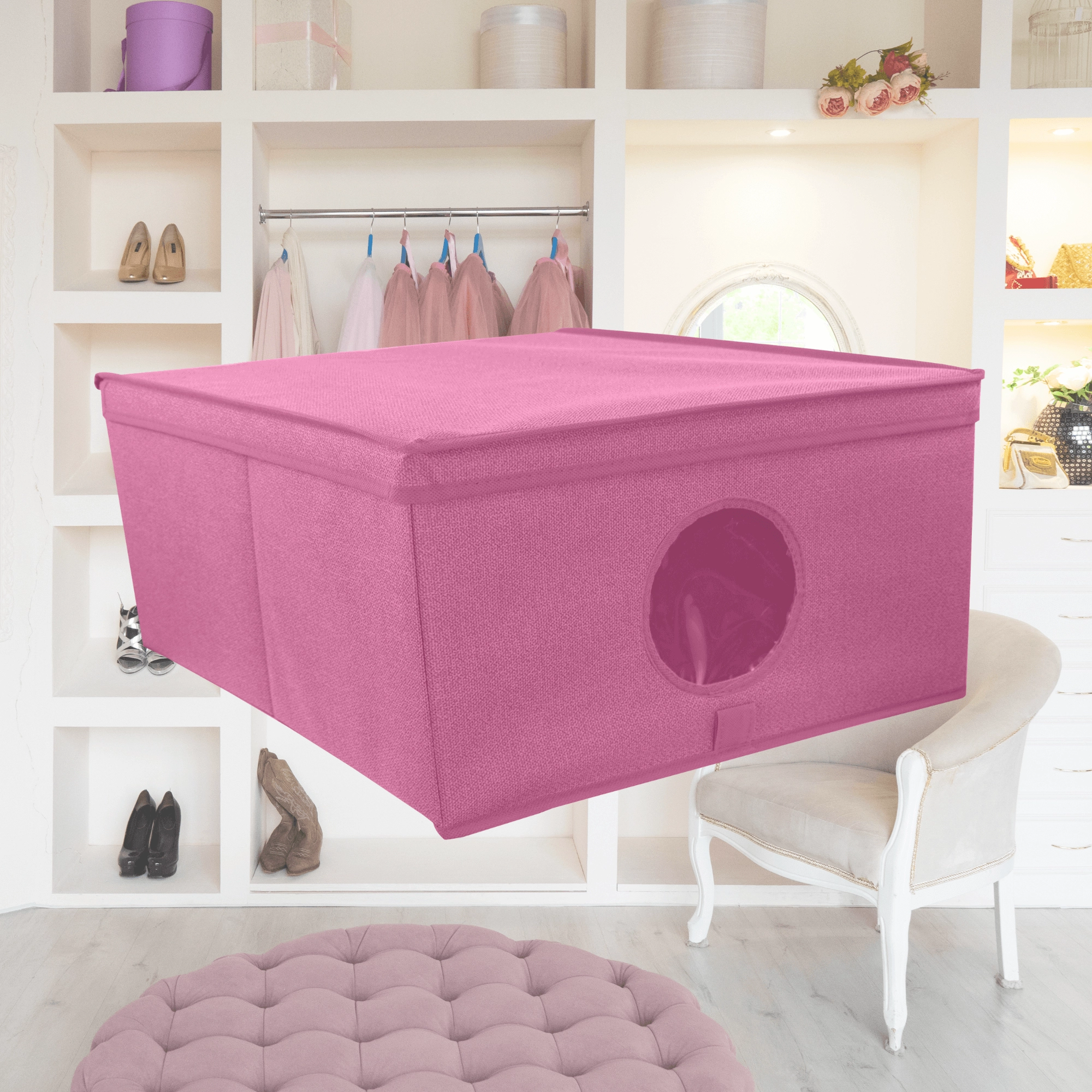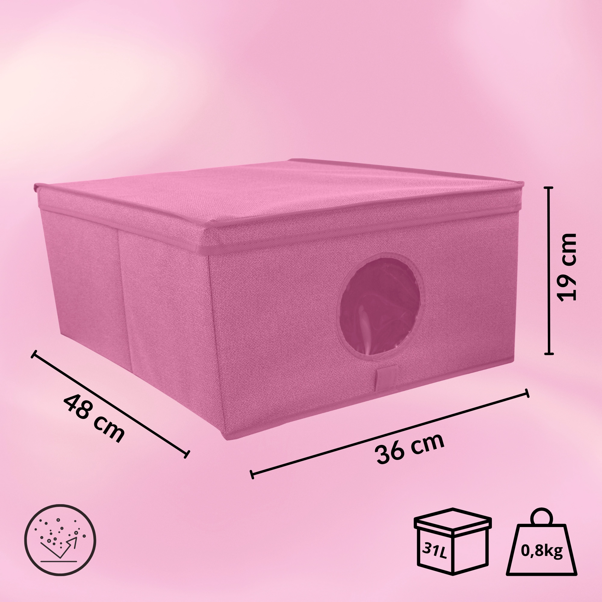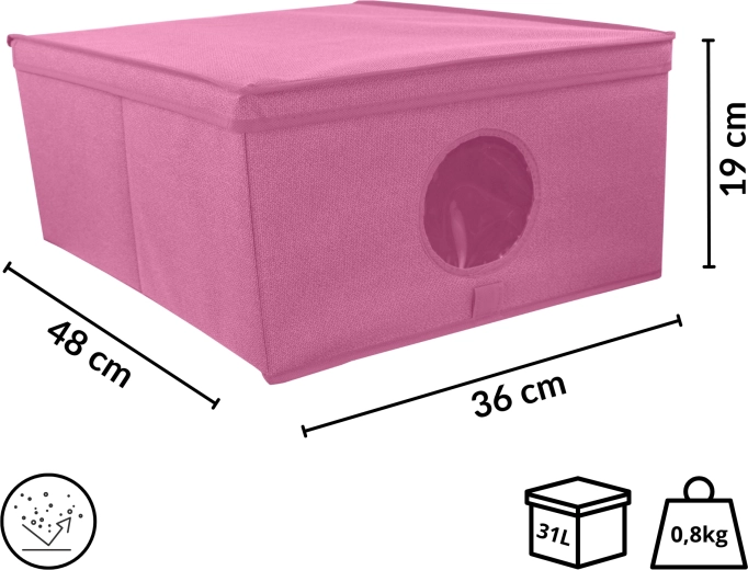Box je ideální na oblečení, doplňky, hračky, ručníky i ložní prádlo. Díky víku zůstane obsah chráněný před prachem a nečistotami, elegantní minimalistický vzhled bez bočních úchytů zase skvěle zapadne do moderních interiérů. Skvěle funguje samostatně i ve větších sestavách na policích šatních skříní.