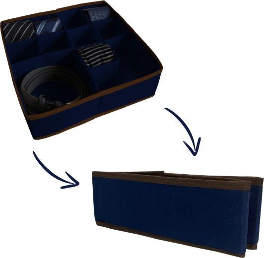 Variabilní mřížka vám umožní vytvořit si až 16 buněk, nebo je naopak zvětšit pro objemnější předměty. Organizér skvěle poslouží v ložnici, koupelně i pracovně – na prádlo, kosmetiku, kravaty, pásky, kabely i kancelářské drobnosti.