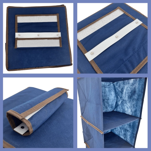Lehká, ale odolná konstrukce z netkané textilie je šetrná k oděvům a snadno se udržuje. Praktické poutko zajistí pevné uchycení na šatní tyč, instalace je otázkou několika sekund a nevyžaduje nářadí. Díky kompaktním rozměrům 30 × 30 × 120 cm se vejde do většiny skříní a efektivně využije volný vertikální prostor.