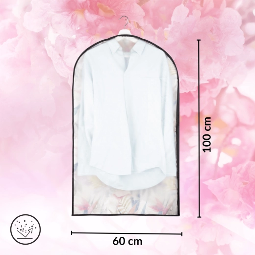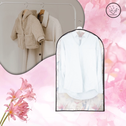 Textilní provedení z netkaného polypropylenu je lehké, prodyšné a odolné. Obal se hodí pro saka, kabáty, šaty i košile a po použití jej snadno složíte do kompaktní podoby.